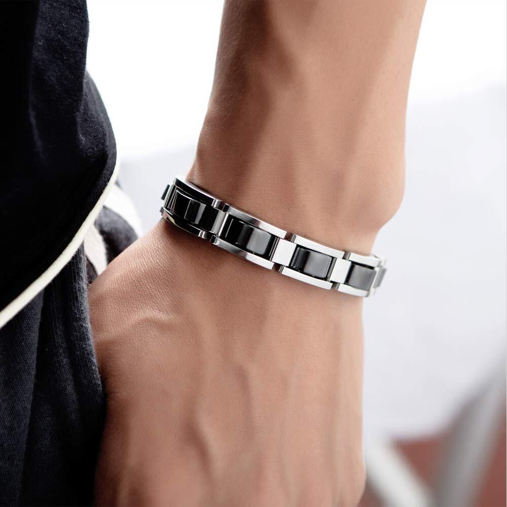 Rockyu 人気 ブランド ブレスレット メンズ チタン シルバー ゲルマニウム 静電気除去 磁気ブレスレット ヨーロピアン 誕生日 ギフト