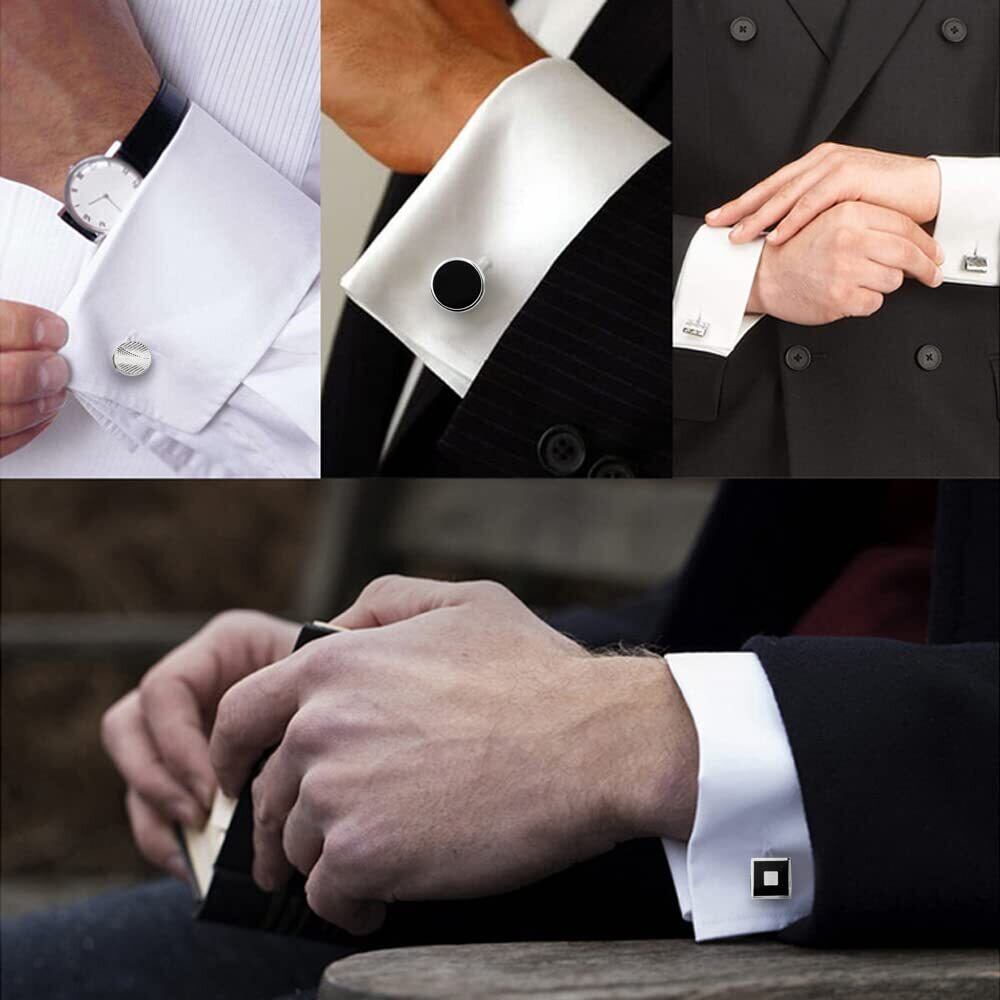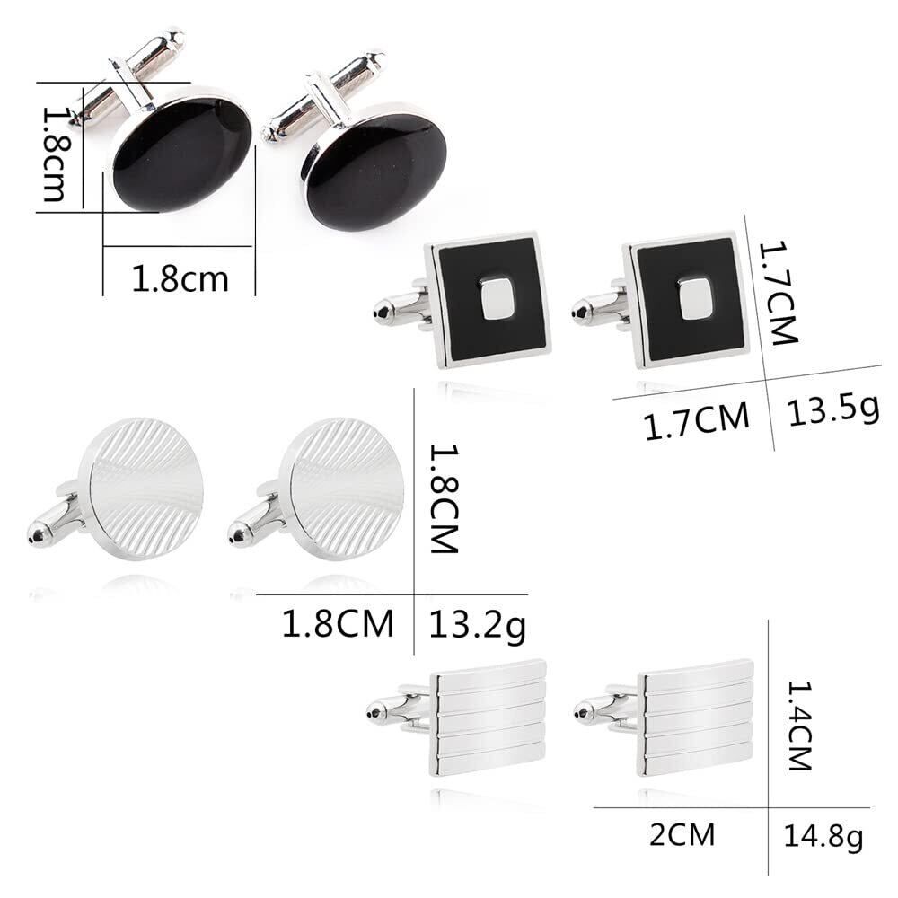 【控えめなデザイン】4ペアの手頃なカフスボタンセットです。派手すぎない黒と白。正式な場合に、シャツを着る時に専用のカフスボタンです