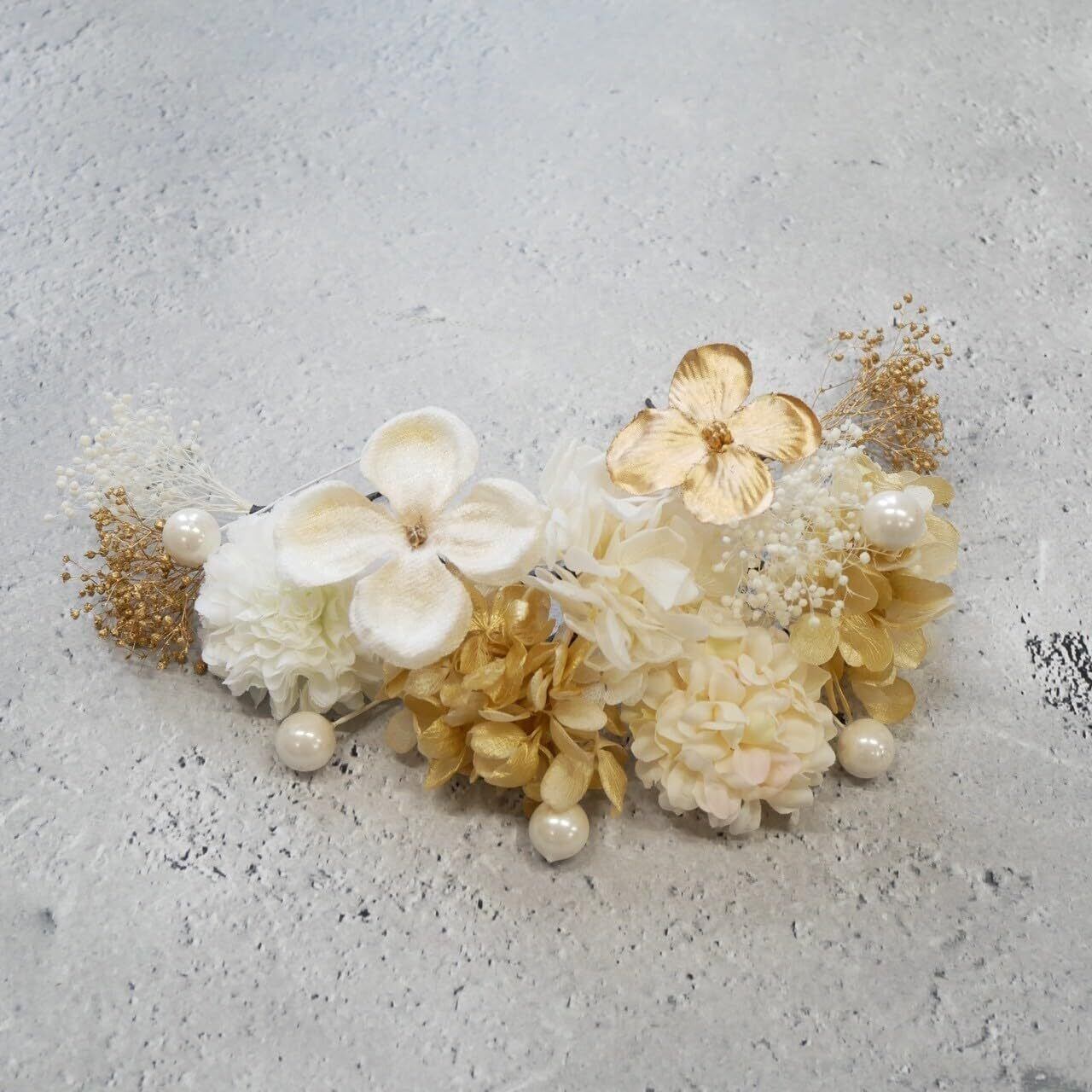 【特価商品】[Lomeri] ロメリ 髪飾り【6色展開】 ドライフラワー マム 着物 和装 浴衣 飾り 振袖 成人式 結婚式 卒業式 七五三 ウエディング かわいい 七五三 U (ホワイトゴールドU40)