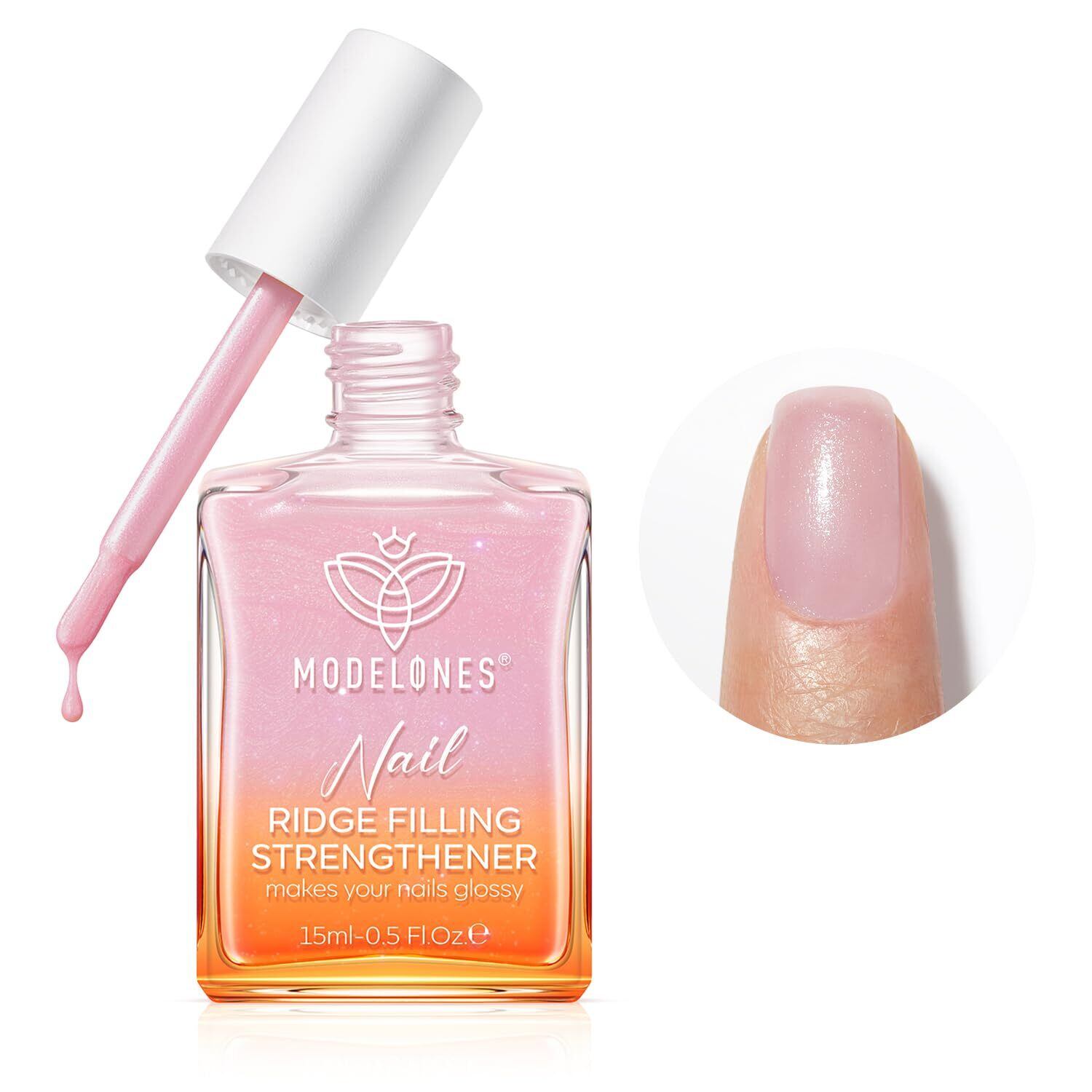 【2022最新】Modelones 15ml 2 in 1 ジェルネイル ネイルケア リッジコンシーラー リッジフィラー強化剤 ベースコート ネイルポリッシュ修復 薄く傷んだ爪用のネイル成長 クリスタルクリア ポリッシュ(ピンク)