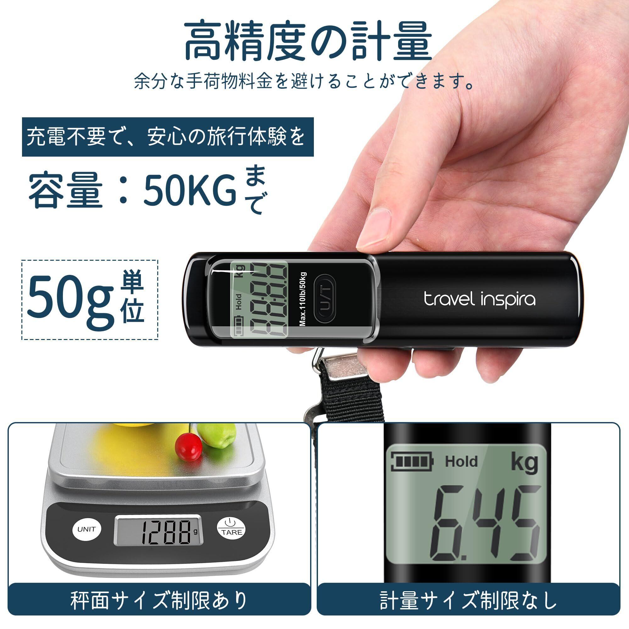【2022最新】Travel Inspira 旅行 荷物 はかり 自己発電 電池不要 ラゲッジスケール スーツケース測り50kg 旅行用品 便利グッズ デジタル 吊りはかり 軽量 トラベル用品 飛行機 快適グッズ 海外旅行 登山 釣りはかり