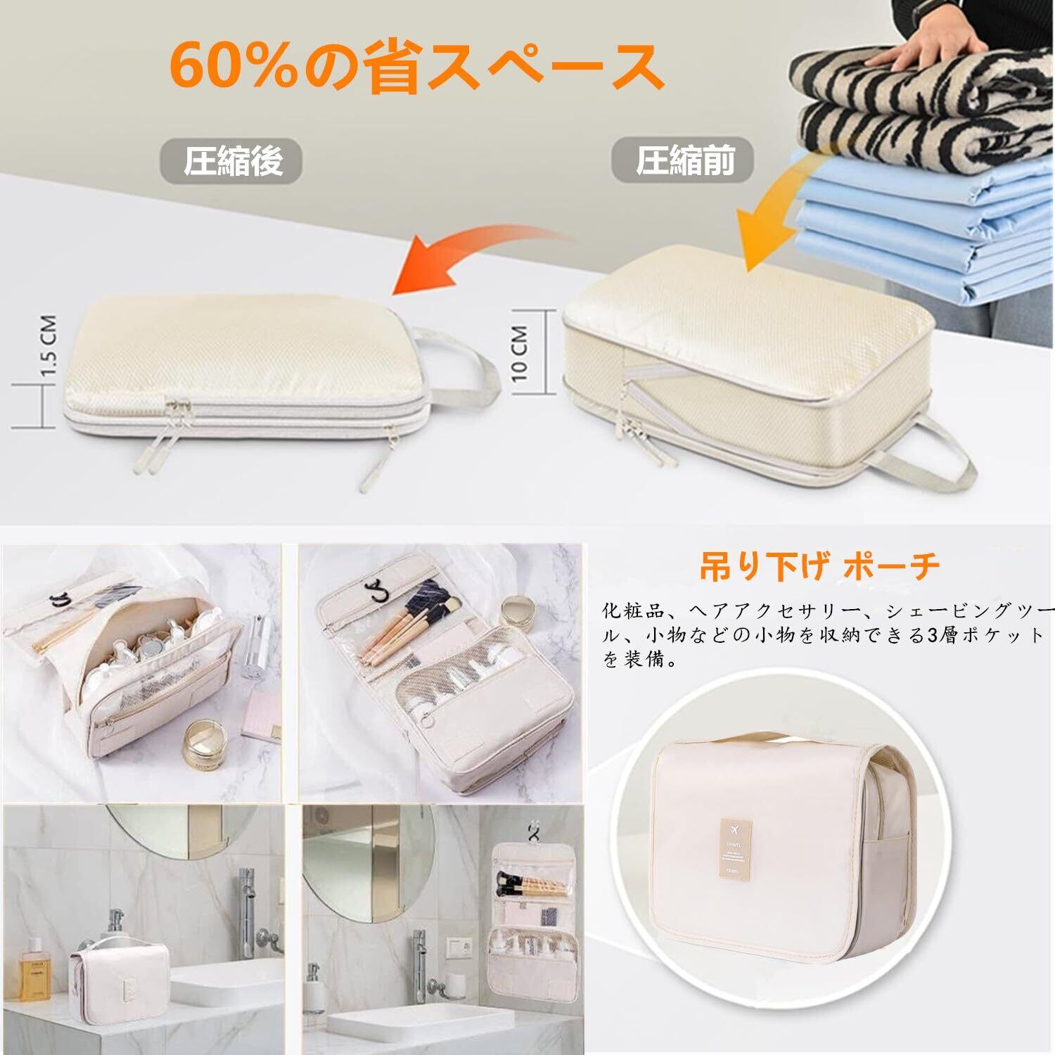 トラベルポーチ 圧縮 セット 旅行用圧縮袋 10点セット 【2025年最新型】 旅行圧縮バッグ パッキングポーチ 可変スペース 圧縮で衣類スペース約60%節約 圧縮ポーチ 洗面用具 旅行用 出張 衣類 整理 便利グッズ 靴用 下着収納 小物入れ (ベージュ)