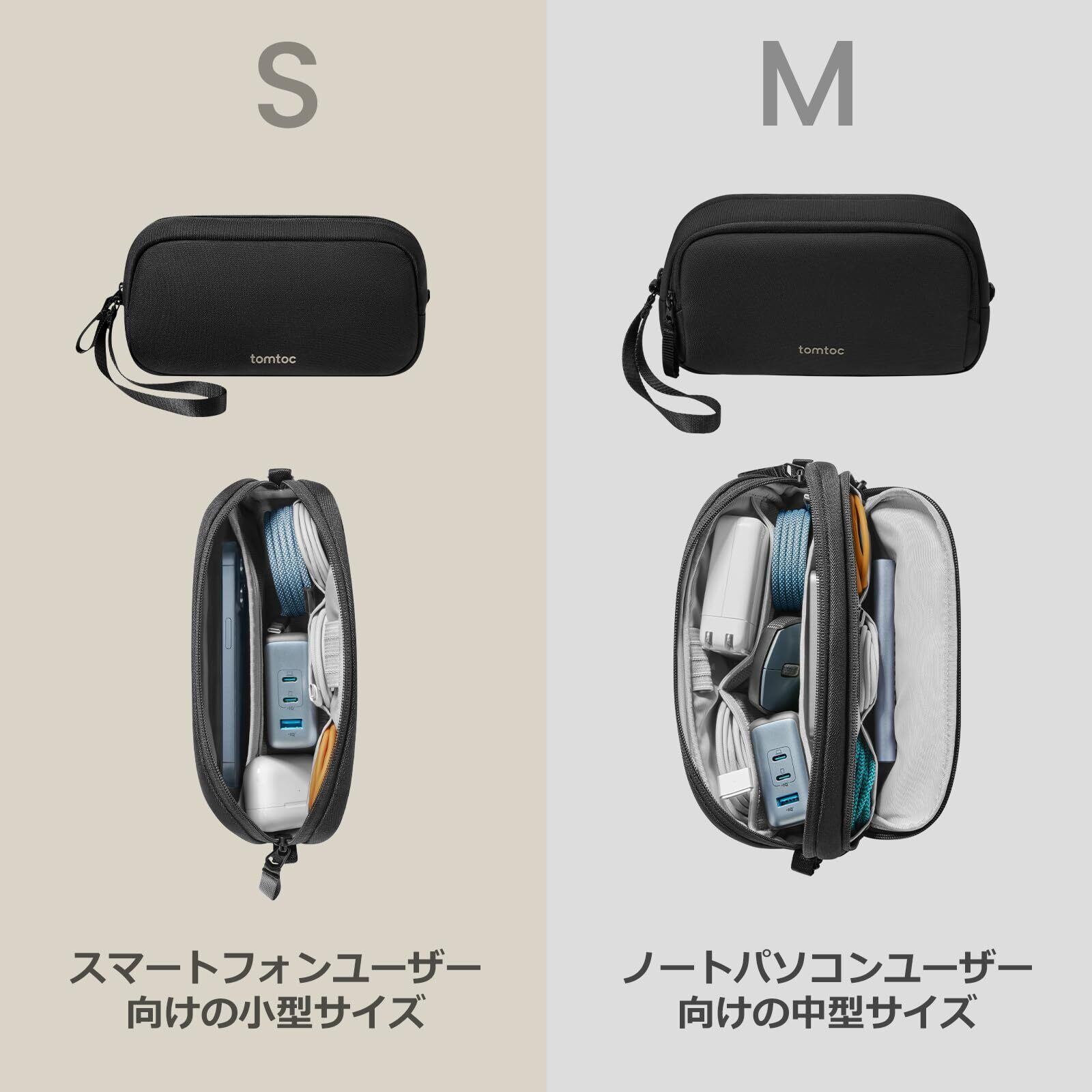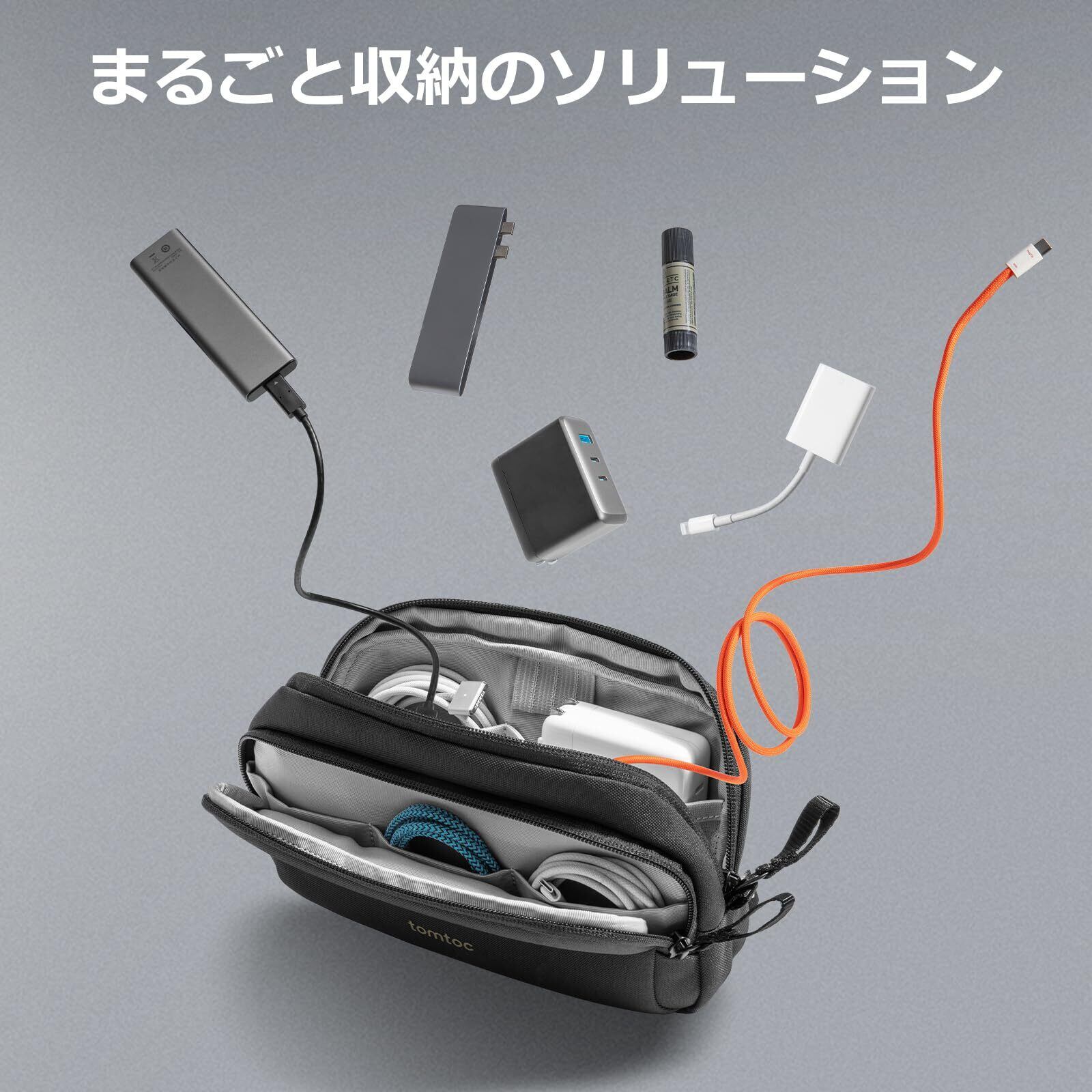 tomtoc ガジェットポーチ 大容量 トラベルポーチ PC周辺小物収納ポーチ 小物入れ バッグ ケース ケーブル アダプタ モバイルバッテリー マウス収納 出張 お出掛け オフィス 旅行 便利グッズ バックインバッグ 二層 自立 撥水 軽量 ブラック
