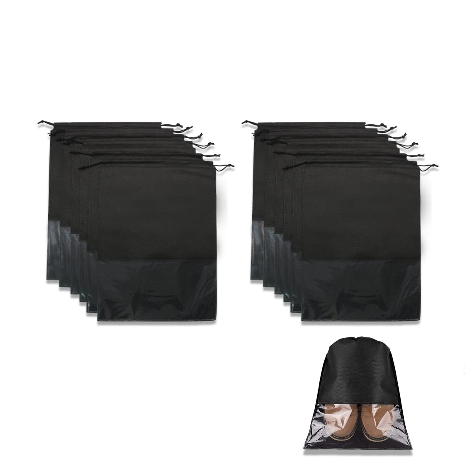 RICISUNG 巾着袋 巾着ポーチ 不織布防塵ポーチ 靴袋 靴収納 防水袋 衣類収納 防水 旅行用 透明なウィンドウスロット付き 八個セット