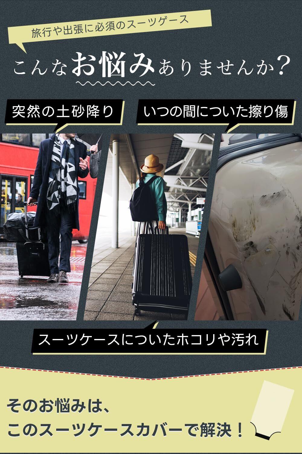 【商品説明】市販のスーツケース防水カバーは、ハンドルとキャリーバーを正常に使用するために、トップに対応する位置に穴が開いていますが、雨の日には水が穴からスーツケースに入ることがあります。この問題を解決するために、私たちの新型防水カバーは、ハンドルとキャリーバーを正常に使用できる状態を保ちながら、穴を自由に覆える機能を備え、大雨の日でも完全防水を実現します。