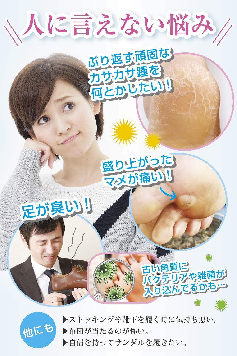 足裏のお悩みを一発で解決。ガサガサ かかと、硬くなった 足のタコ、魚の目 の上の盛り上った角質に 直接やすり面を充てて擦るだけで、あっという間に驚くほど沢山の不要な角質が粉になって落ちいき、仕上がりすべすべな素肌を取り戻すことができます。