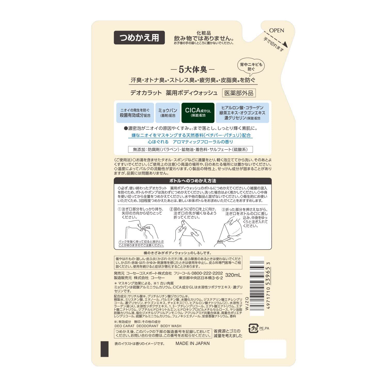 デオカラット 薬用ボディウォッシュ 体臭ケア 素肌ケア CICA サリチル酸 配合 つめかえ 320mL×2個 セット + おまけつき KOSE