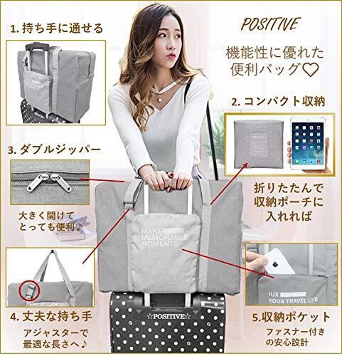 【POSITIVE】 折りたたみ ボストンバッグ 収納ポーチ付 大容量 機内持込可 スーツケース固定可 書付 (07.Newグレー)