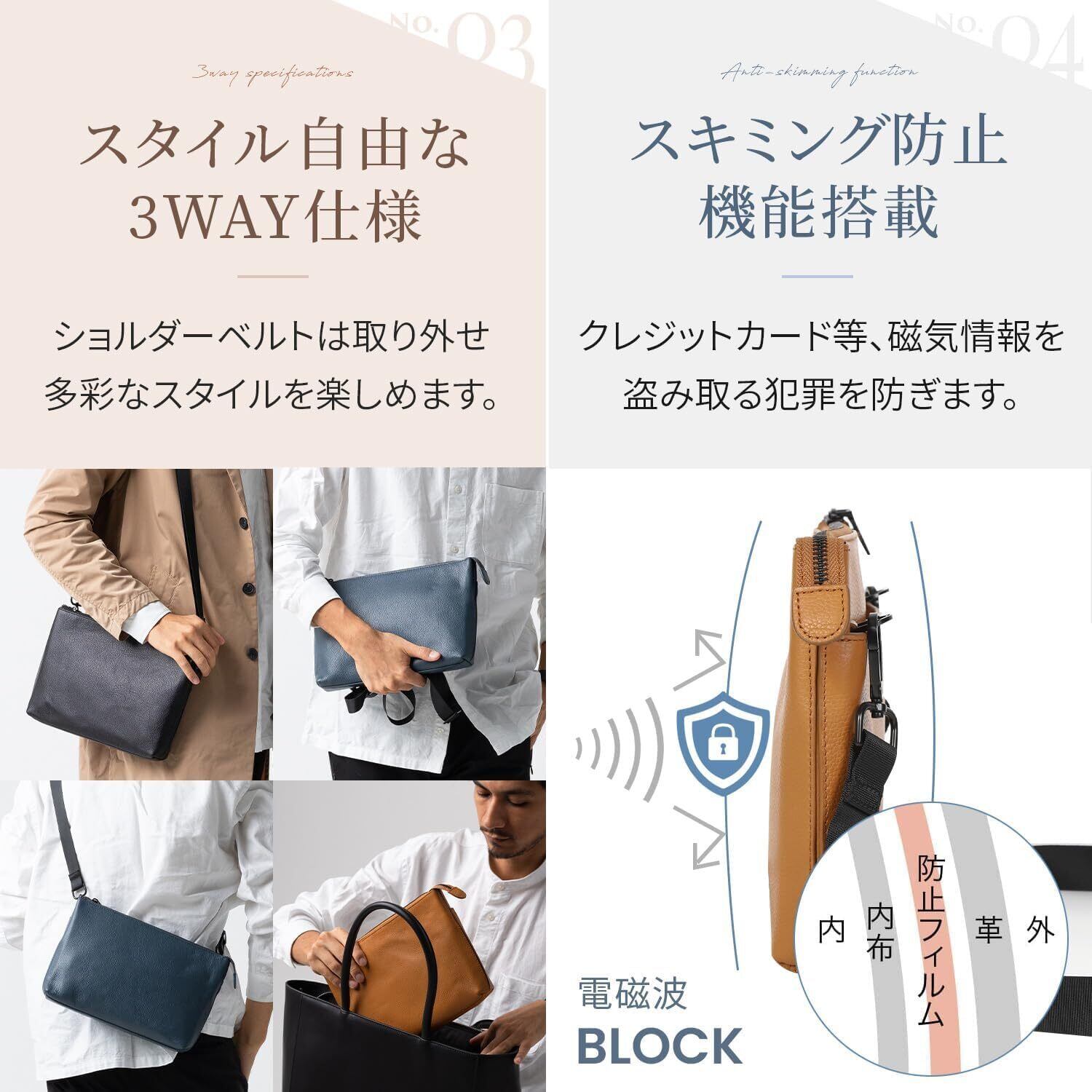 [ムラ] サコッシュ ショルダーバッグ メンズ 本革 スキミング防止 薄型