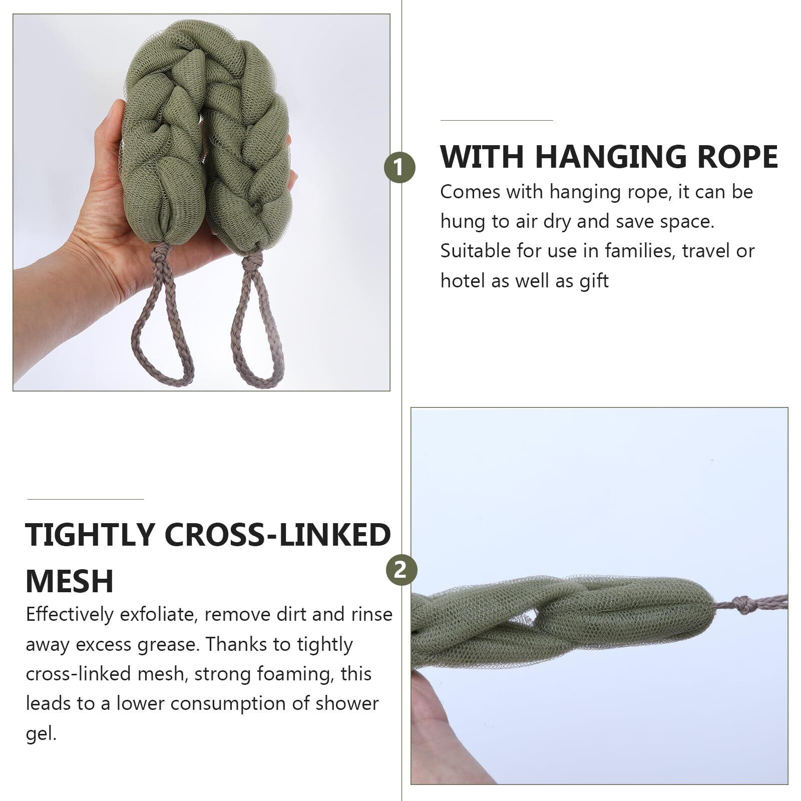 KESYOO ボディスポンジ 泡立てネット バススポンジ 背中も洗える 長い メッシュフラワー シャワー用品 フラワーボール バスグッズ 風呂 バスグッズ(グリーン)