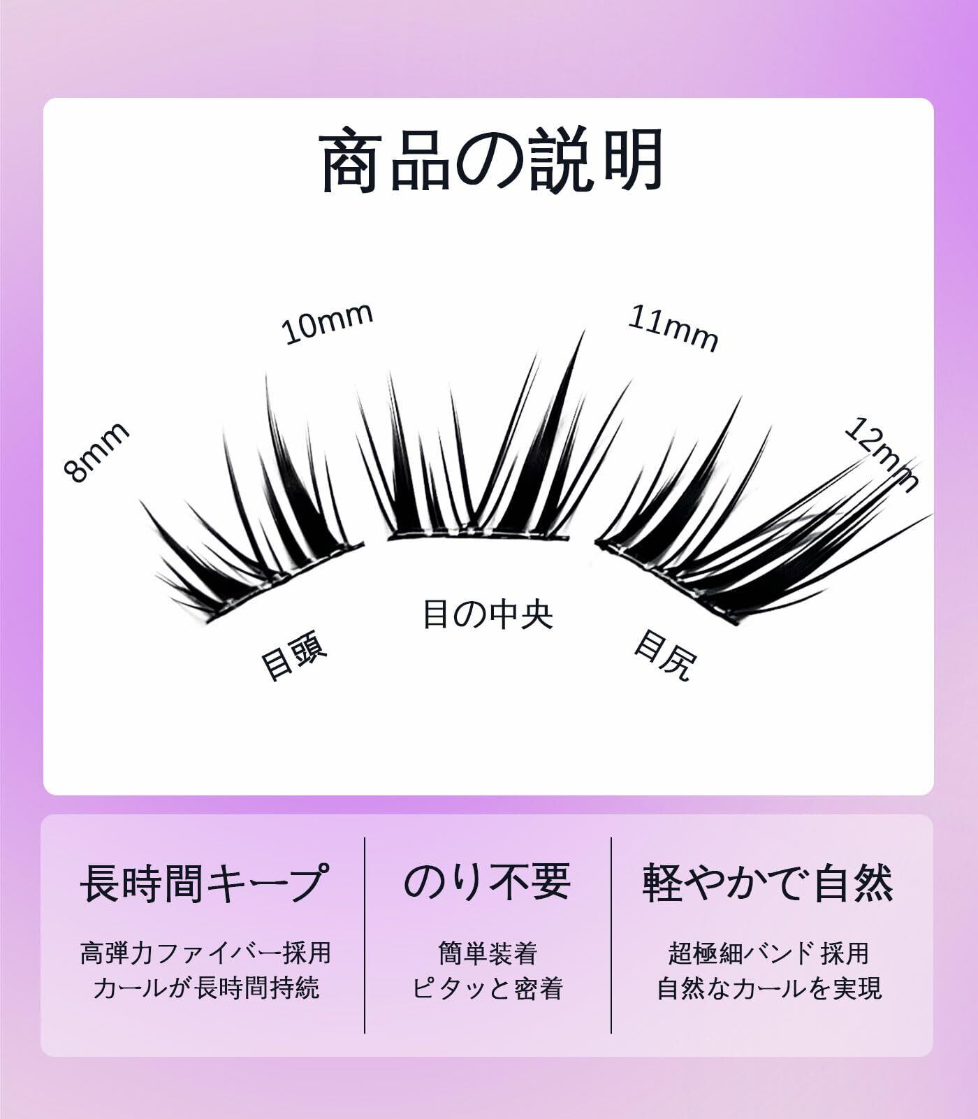 ナチュラルな束感デザイン - 部分用のつけまつげが自然な束感を演出し、目尻メイクやワンホン風メイクに最適