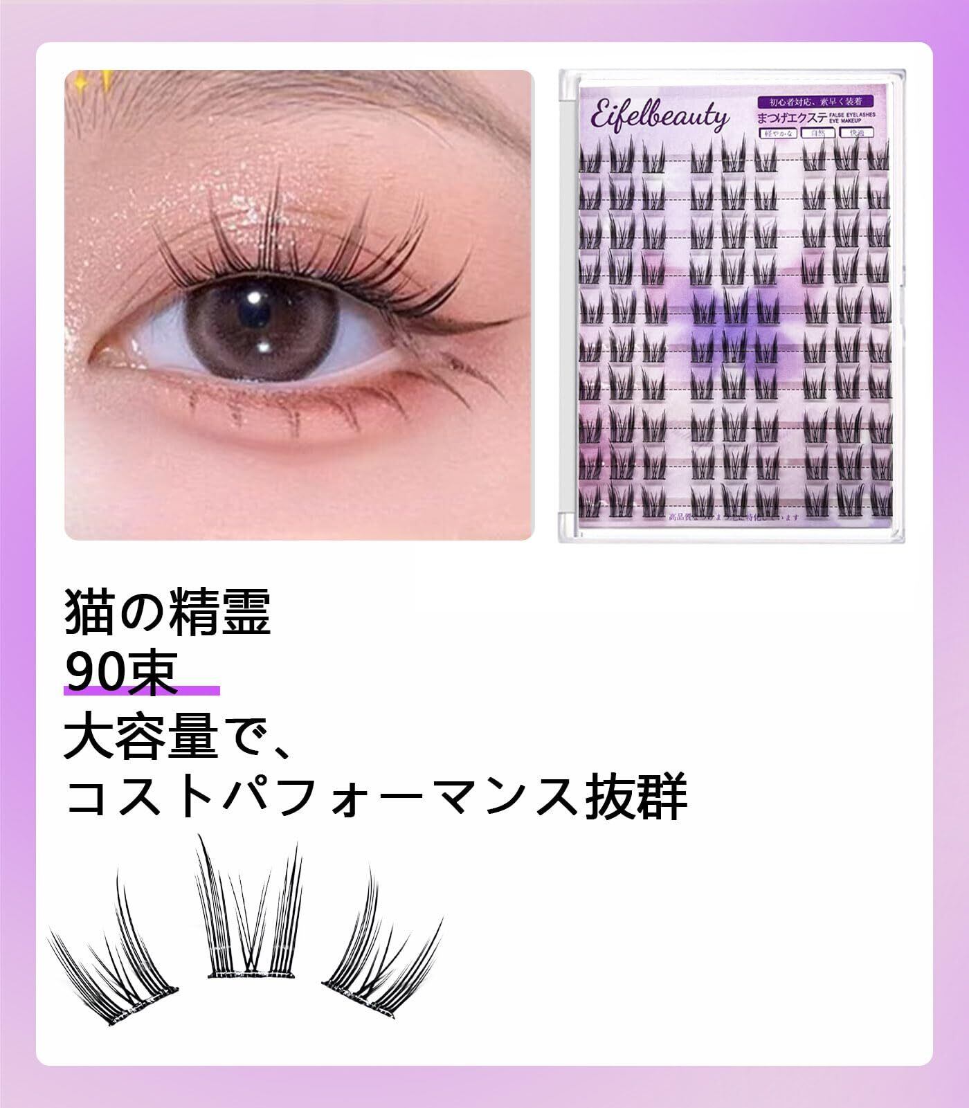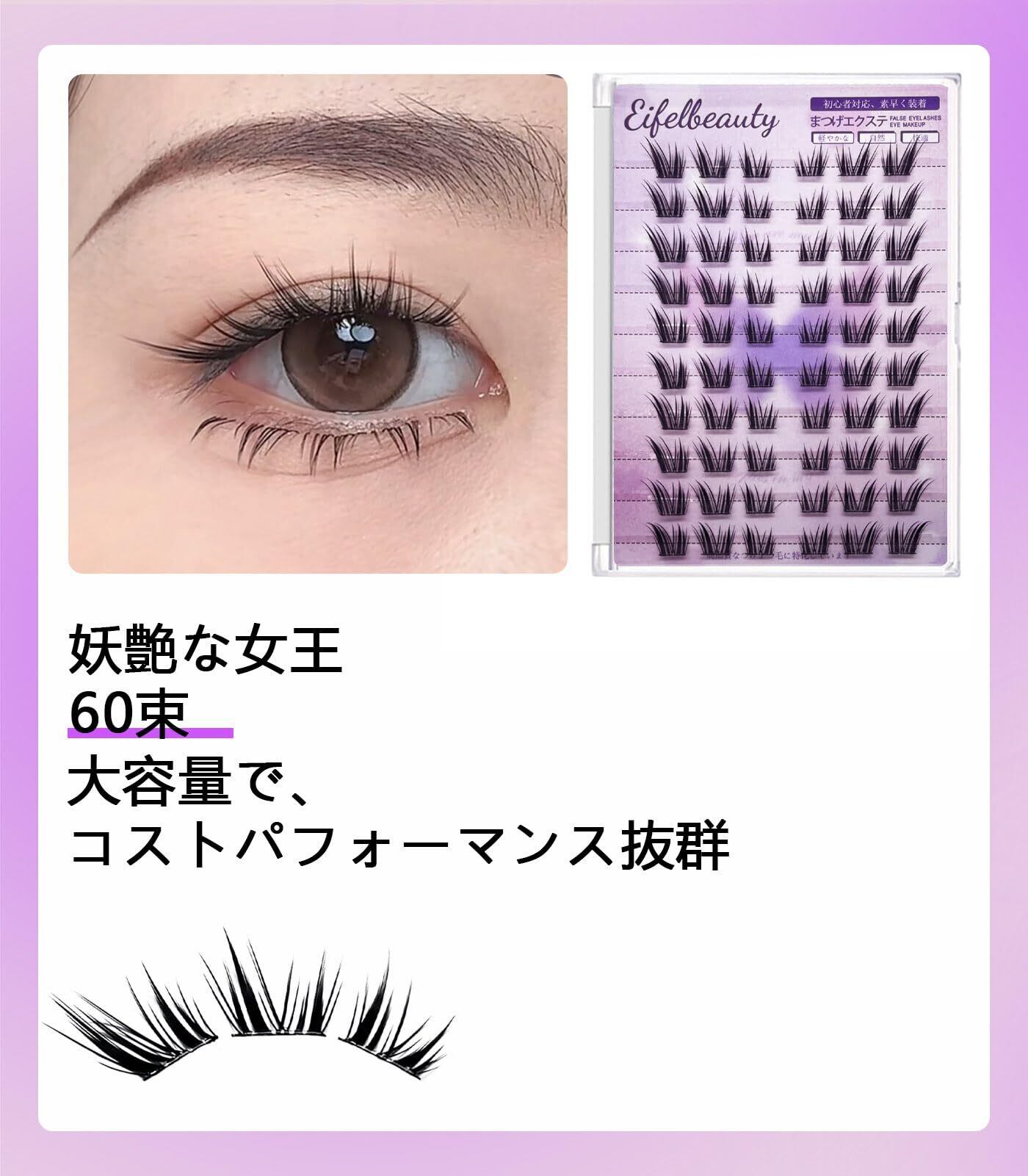 Eifelbeauty グルー不要 人工繊維 分割式つけまつげ ナチュラル束感 大容量 セット 性価比の良い選択 ワンホン風 軽量で快適 極細黒軸 一回使い切り 簡単装着 デイリーメイクに最適