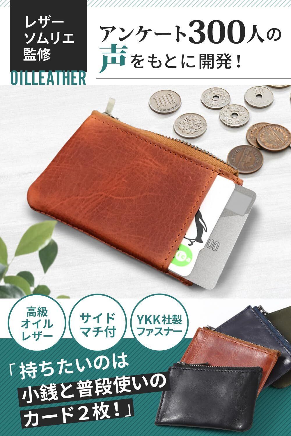 【商品詳細】素材:牛本革/オイルレザー カラー:ブラック サイズ:9cm×6cm×(最小)0.5cm 金具:安心のYKKファスナー 重さ:約25g ※使い込むうちに馴染んでいく本革商品のため、カードポケットに関してはあえてカードサイズぎりぎり仕様にしております。
