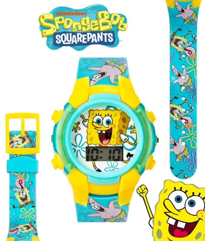 NickelodeonのスポンジボブスクエアパンツキッズLCDウォッチで時間を伝える喜びに飛び込みましょう! 時間を読むことを学ぶだけでなく、この時計はビキニボトムの活気に満ちた世界を子供の手首にもたらします。遊び心のあるパターンで点滅するLEDライトで、みんなのお気に入りの海綿スポンジ、スポンジボブと友達のパトリックとゲイリーの陽気な個性を捉えます。 明るい黄色で包まれたデジタルディスプレイは、人目を惹き、ユーザーフレンドリーで、時間を伝える旅を始めたばかりの方に最適です。 柔らかく丈夫なストラップは、お子様の遊びの荒れや転倒に対応するように設計されています。防水設計なので、手洗いや雨の日の水しぶきで時計を心配する必要はありません。 自立と自信を育むこの時計は、お子様が時間とともに楽しくインタラクティブな方法です。 美しくデザインされた収集価値のあるスポンジボブのブリキの箱に梱包されており、ギフトが開かれてからずっと記念品の役割を果たします。 誕生日、休日、または「ただの理由」のサプライズであろうと、この時計は遊び心と実践的な学習を組み合わせた思慮深く刺激的なプレゼントです。 お子様がスポンジボブや友達の楽しさをどこへでも運び、新しいスキルに誇りを持っているのを見守ってください。スポンジボブなら、毎分冒険になるからです。