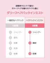 洗い流し不要のミストタイプのヘアパック。タンパク質が失われたダメージヘアに5種類のタンパク質と17種類のアミノ酸を補給します。ハイブランド香水のような気品溢れる香りとLPP(低分子)+PPT(高分子)の二重のタンパク質によるダメージケアで美髪に導きます。