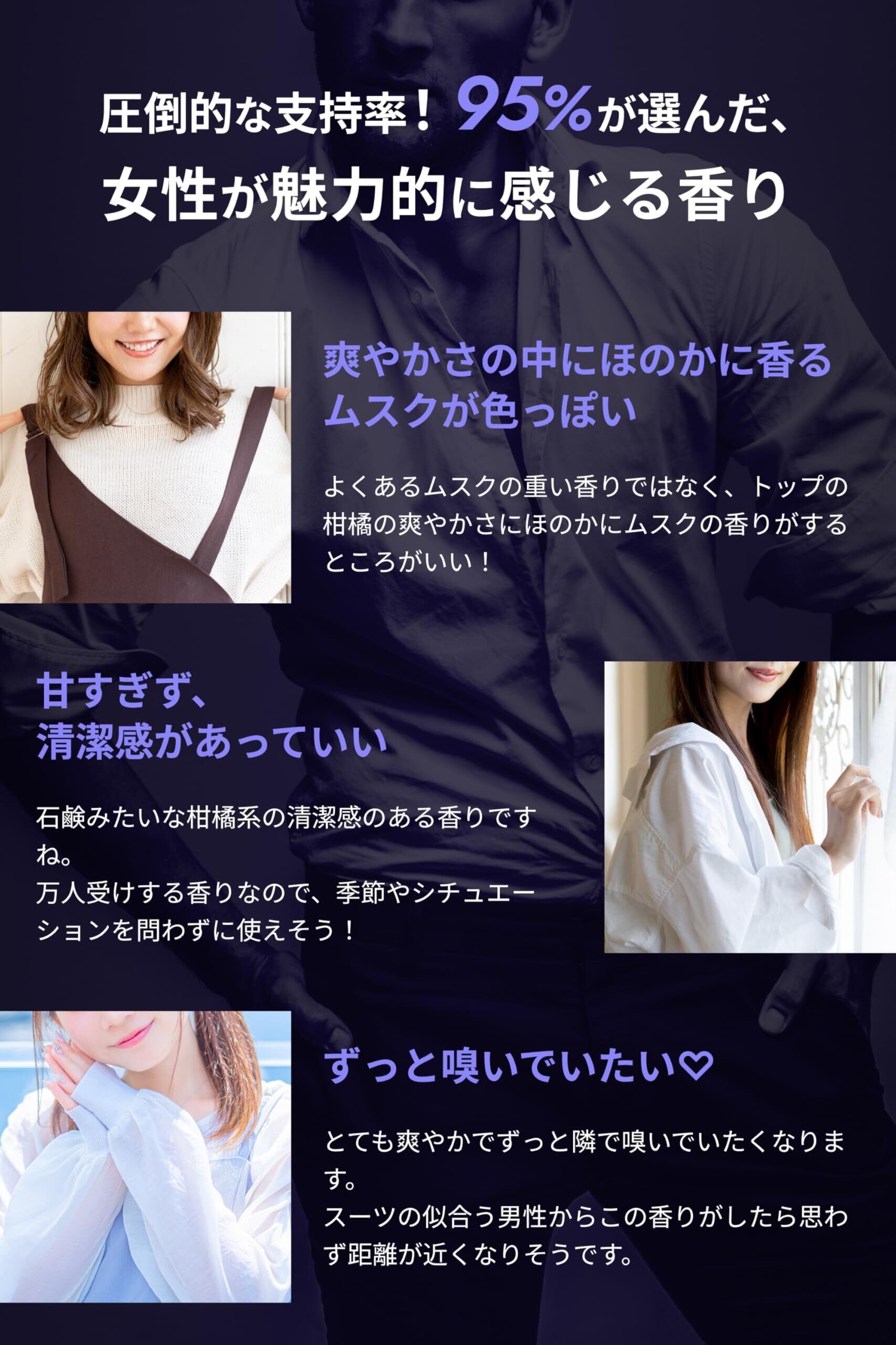 【男性の魅力UPを意識したメンズ香水】男性的な魅力を高める香りとシトラスムスクで嗅覚から女性にアピールできます。デートだけでなく、普段使いにも使いやすい、オードパルファム(オードパルファン)を採用したメンズ香水です。
