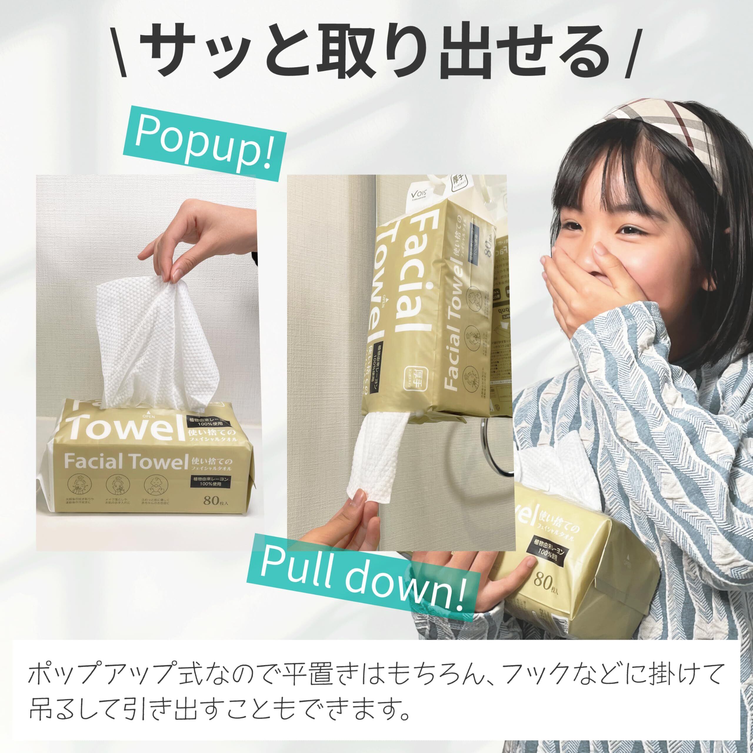 VOIS 使い捨てのフェイシャルタオル 80枚入×3個 厚手 クレンジングタオル フェイスタオル 洗顔シート メイク落としシート 敏感肌 乾燥肌 肌荒れ対策 吸水保湿 乾湿両用 肌に優しい 赤ちゃんに優しい