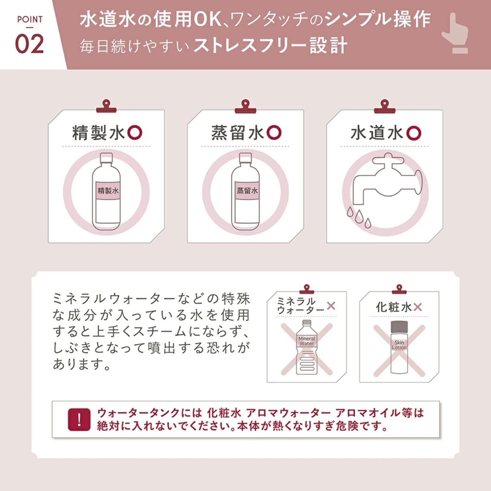 ✨【納得の大容量スチーム】コンパクトな見た目からは想像できない大容量スチームと、98mlのタンク容量で大満足のうるおい時間をあなたに。