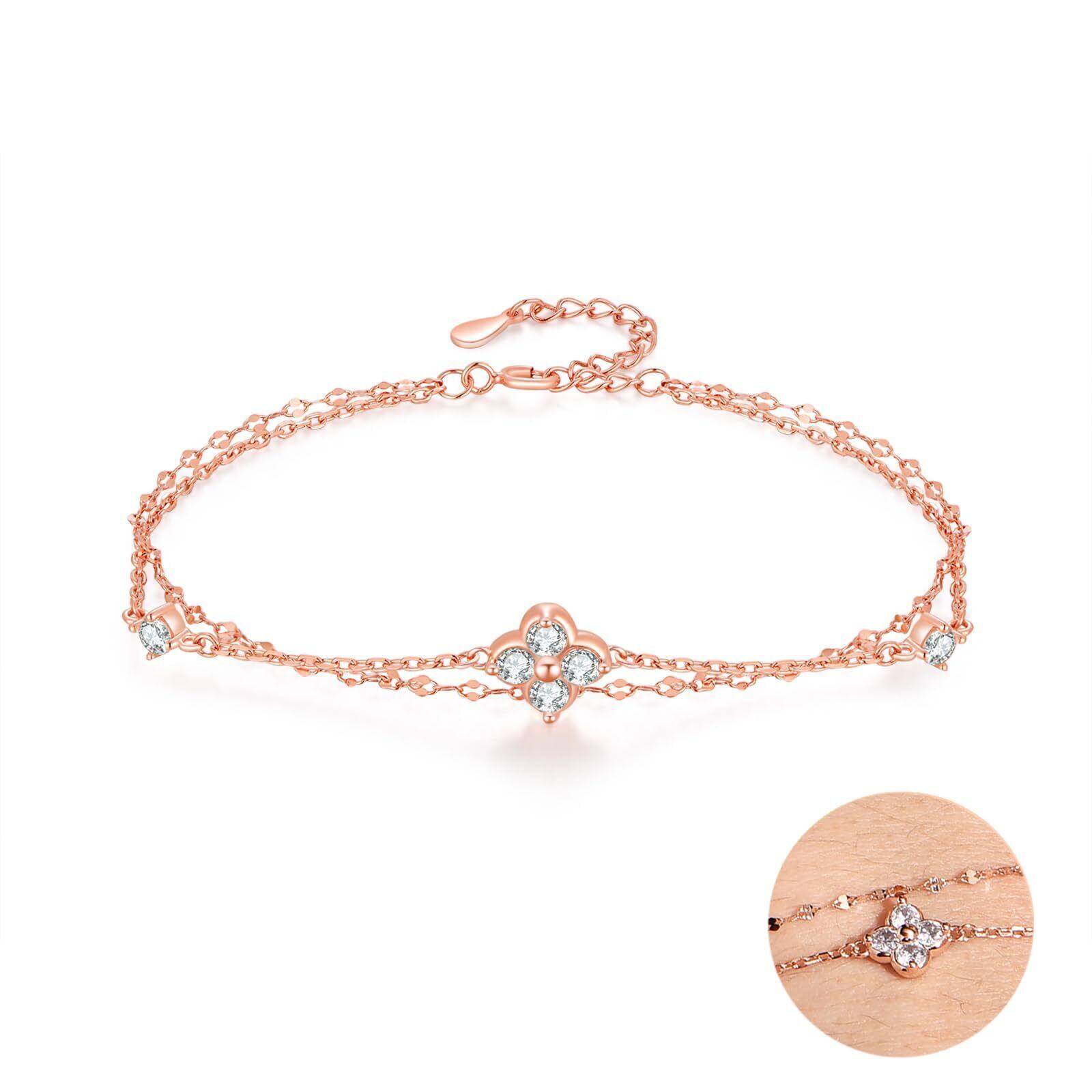 幸運のお守り:ピンクゴールド ブレスレットの四葉のクローバーは幸運、愛、健康、富を象徴し、幸運のお守りであり、あなた専属の幸運をもたらします