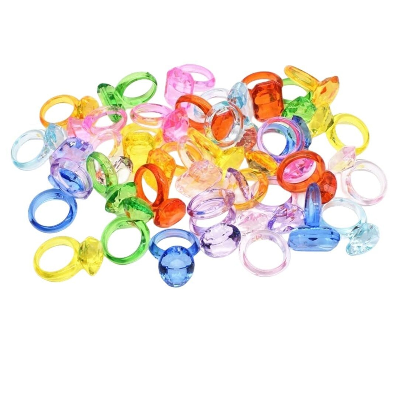 [SPRMUD] プラスチックアクリルリング 複数形 アソートカラー ダイヤモンドリング パーティーの記念品 女の子 誕生日プレゼント 賞品 カーニバル おもちゃ グッディーバッグ 子供用, プラスチック (30)