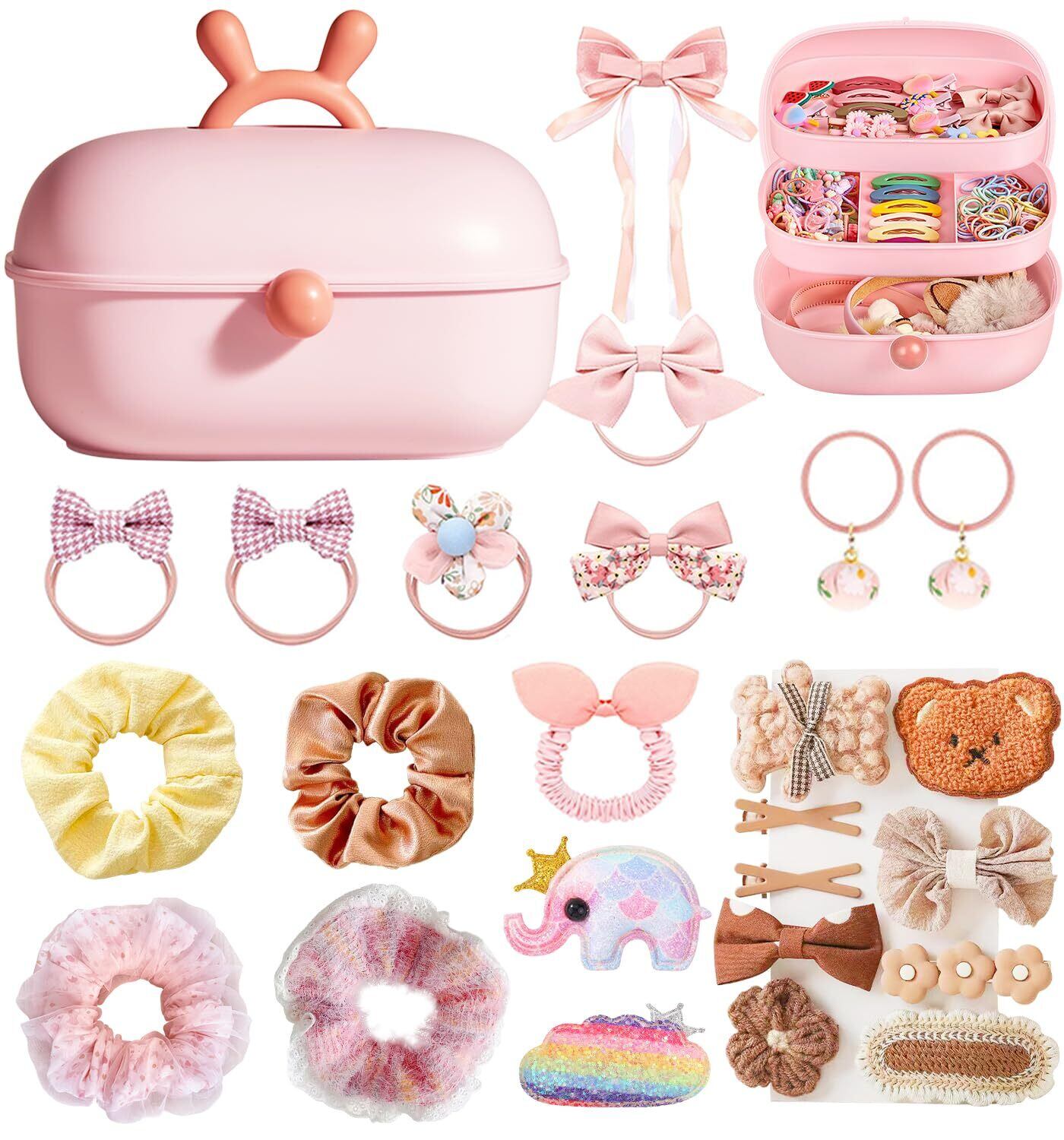 Luxureux 女の子 ヘアアクセサリーセット ヘアアクセサリー ケース 3層 キッズ 可愛い 小物入れ 3Dステッカー付き ヘアクリップ ヘアゴム 子供 おしゃれ カラフル 誕生日/クリスマス/入園式/卒園式/入学式/卒業式/子供の日/七五三/ギフト/ベビー1歳 2歳3歳4歳5歳6歳 小学生 (Cream-pink)