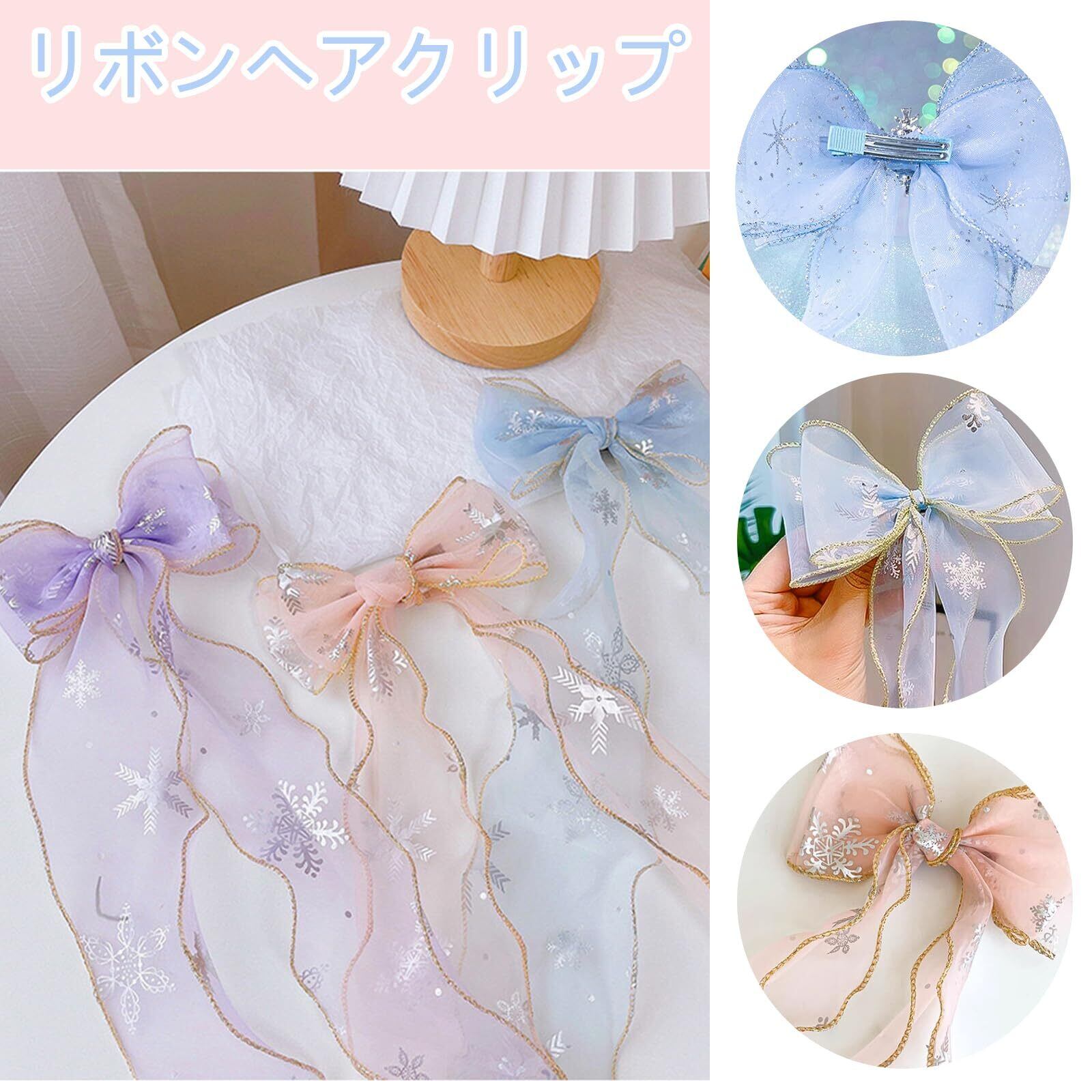 Doyime ヘアクリップ リボン ヘアアクセサリー (3点セット) 蝶結び ヘアピン プリンセス 髪飾り おしゃれ 可愛い 子供 発表会 コスプレ 撮影 誕生日 パーティー 跡がつかないヘアピン ピンク パープル ブルー
