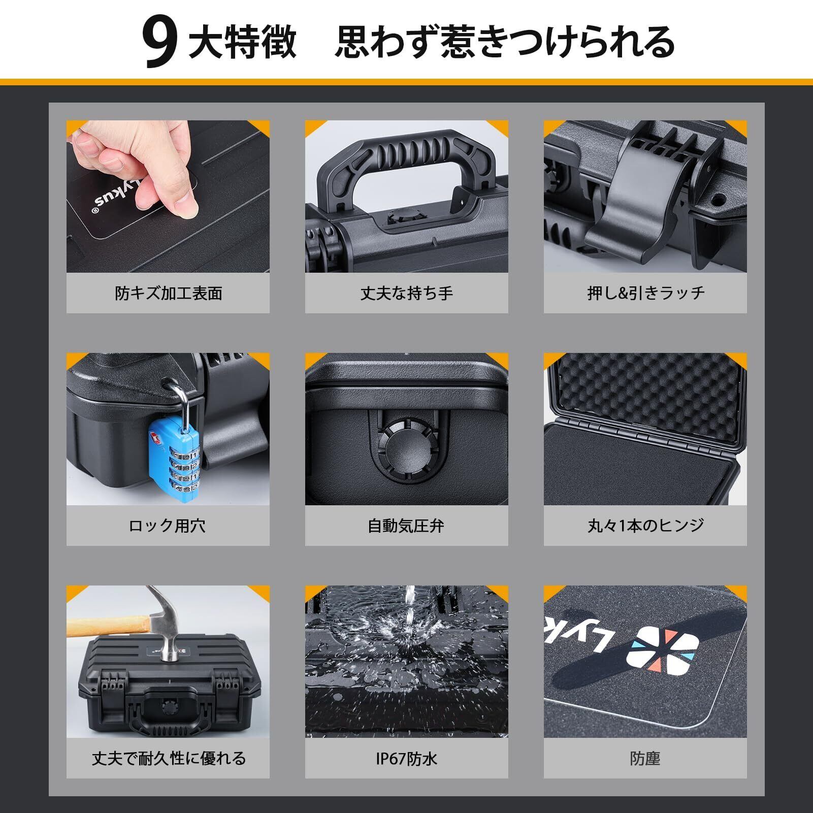 【新春セール】Lykus HC-2810 防水ハードケース 格子状カットスポンジが内蔵 内寸:28.4x22.4x10.1 cm ピストル、小型ドローン、ビデオカメラ、バイクケースなどに適用