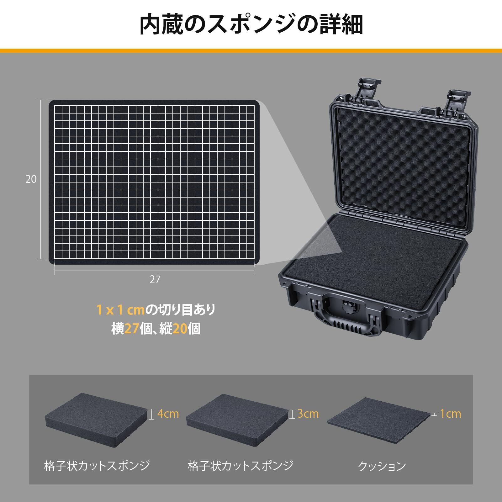 Lykus HC-2810 防水ハードケース 格子状カットスポンジが内蔵 内寸:28.4x22.4x10.1 cm ピストル、小型ドローン、ビデオカメラ、バイクケースなどに適用