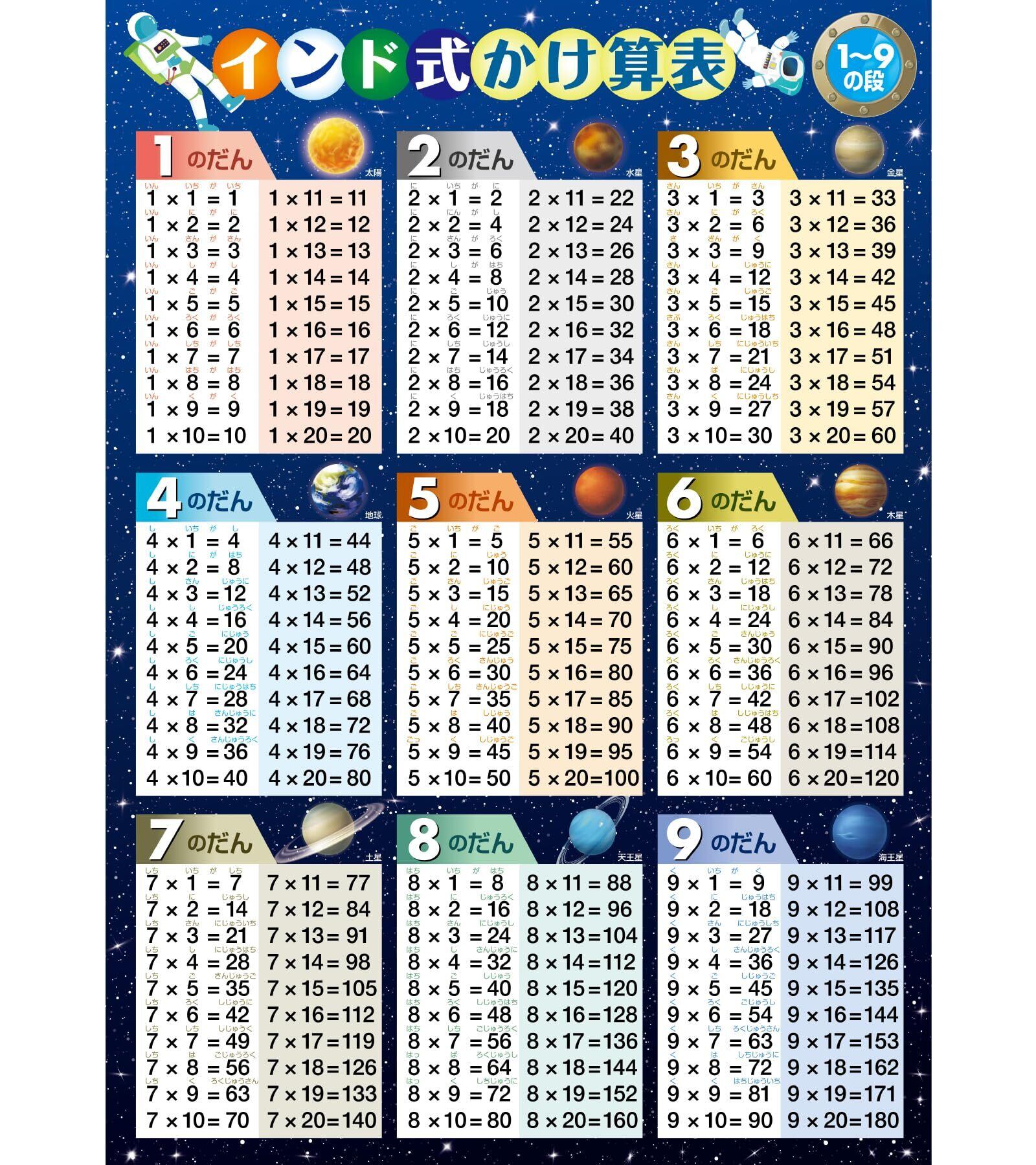 お風呂の学校 インド式かけ算表 1〜9の段 お風呂ポスター 日本製(宇宙デザイン) 算数 知育 学習 九九表 A2サイズ
