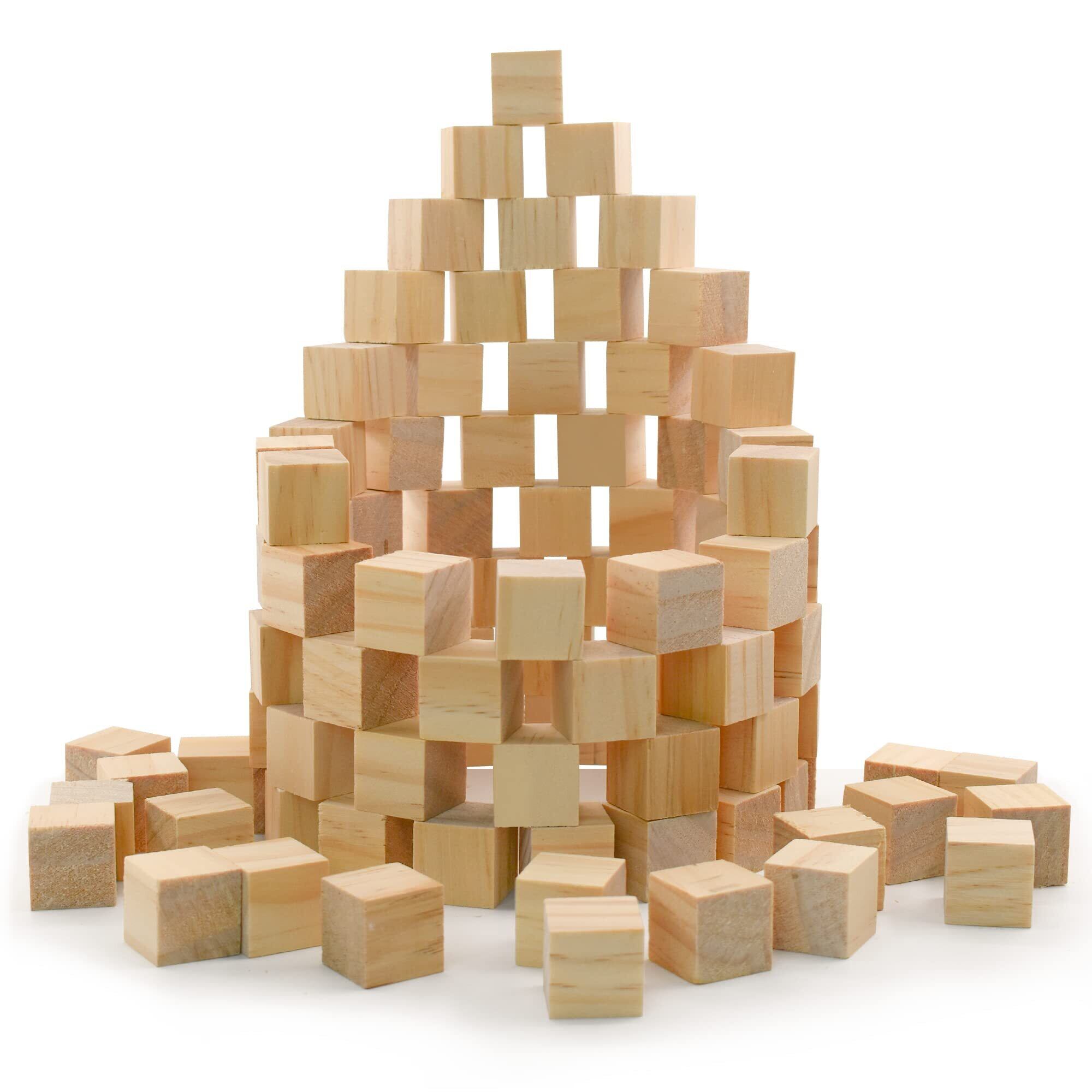 「100個セット」:サイズは2*2*2cmの木製ブロック100個セットです。数が多いので、城、3Dパズル、その他の工芸品を構築するための積み木として使用できます。