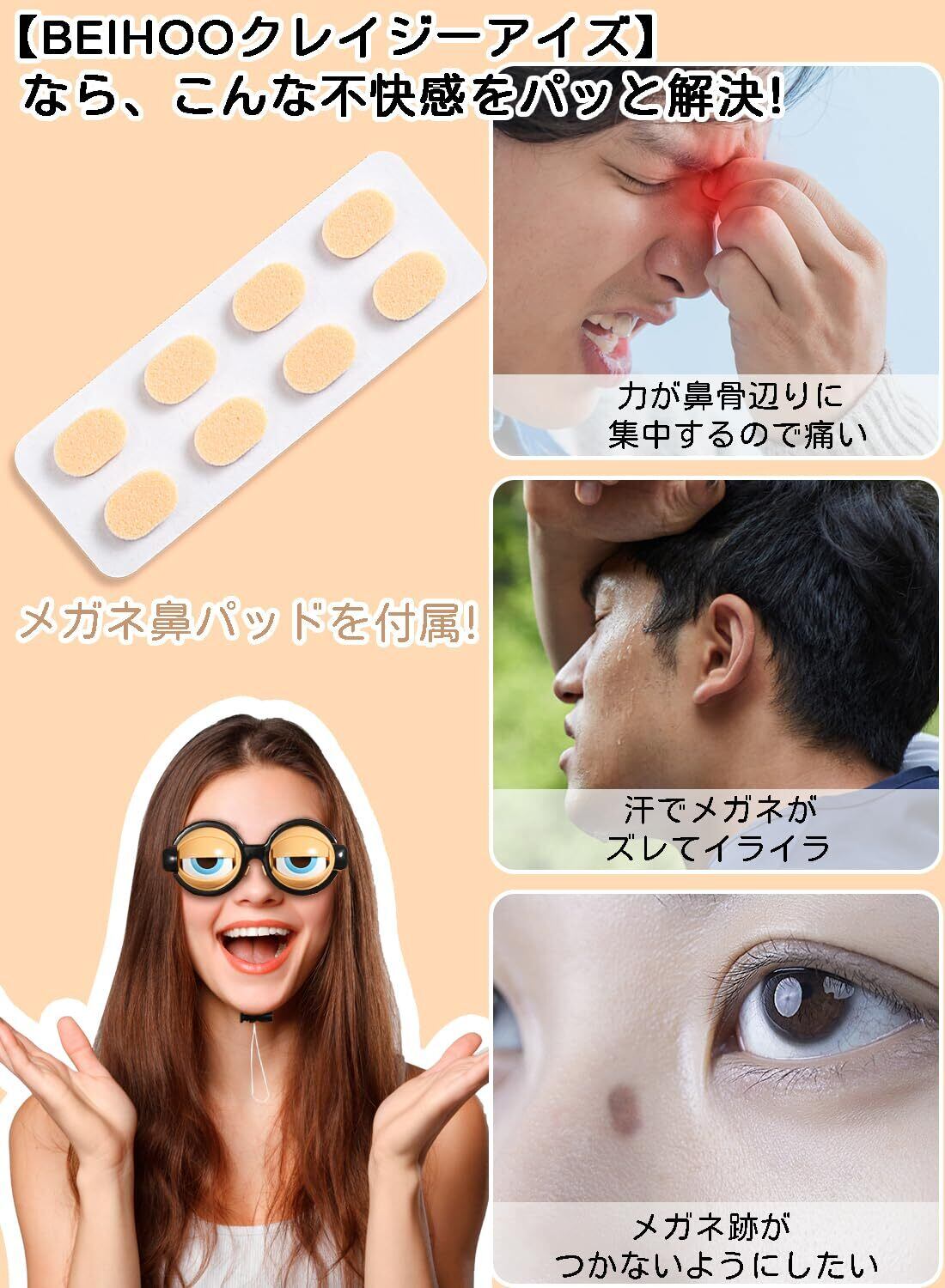 [BEIHOO] ザコシメガネ クレイジーアイズ おもしろ パーティー グッズ 鼻パッド付き 痛くない 滑り止め 余興 忘年会 イベント 誕生日 歓送迎会 万聖節 クリスマスプレゼント おもちゃ