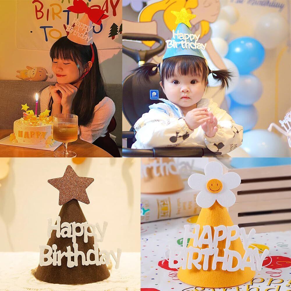 【2022最新】[Selinear] バースデーハット 4個セット 三角帽子 Happy Birthday 誕生日 ハット 誕生日 お祝い 写真道具 パーティー小物 キッズ 子供 大人兼用