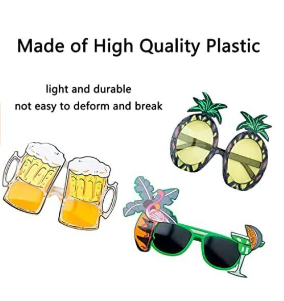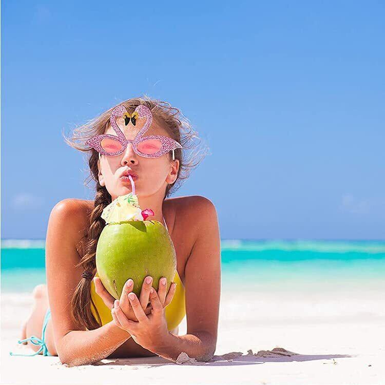 【セット内容】:フラミンゴ、ココナッツツリー、パイナップル、ビールジョッキのような4個つの楽しいサングラス。 鮮やかな色と独特の形があなたの夏に喜びをもたらします。