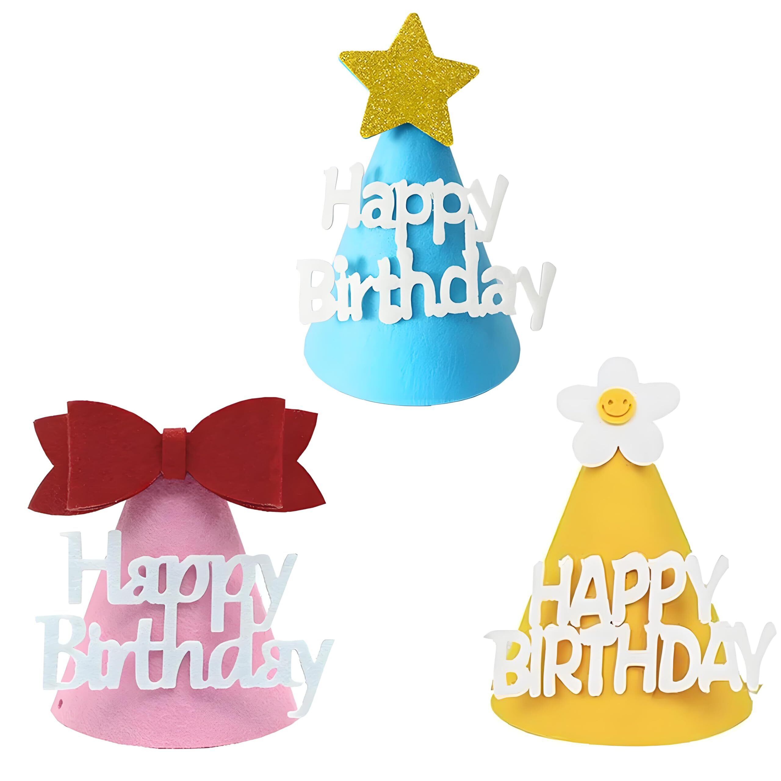 [ZHSHXNGY] 誕生日帽子誕生日 ハット 3個セット バースデーハット 三角帽子 Happy Birthday コーンハット お祝い 飾り 写真道具 バースデー パーティー小物 子供 大人兼用