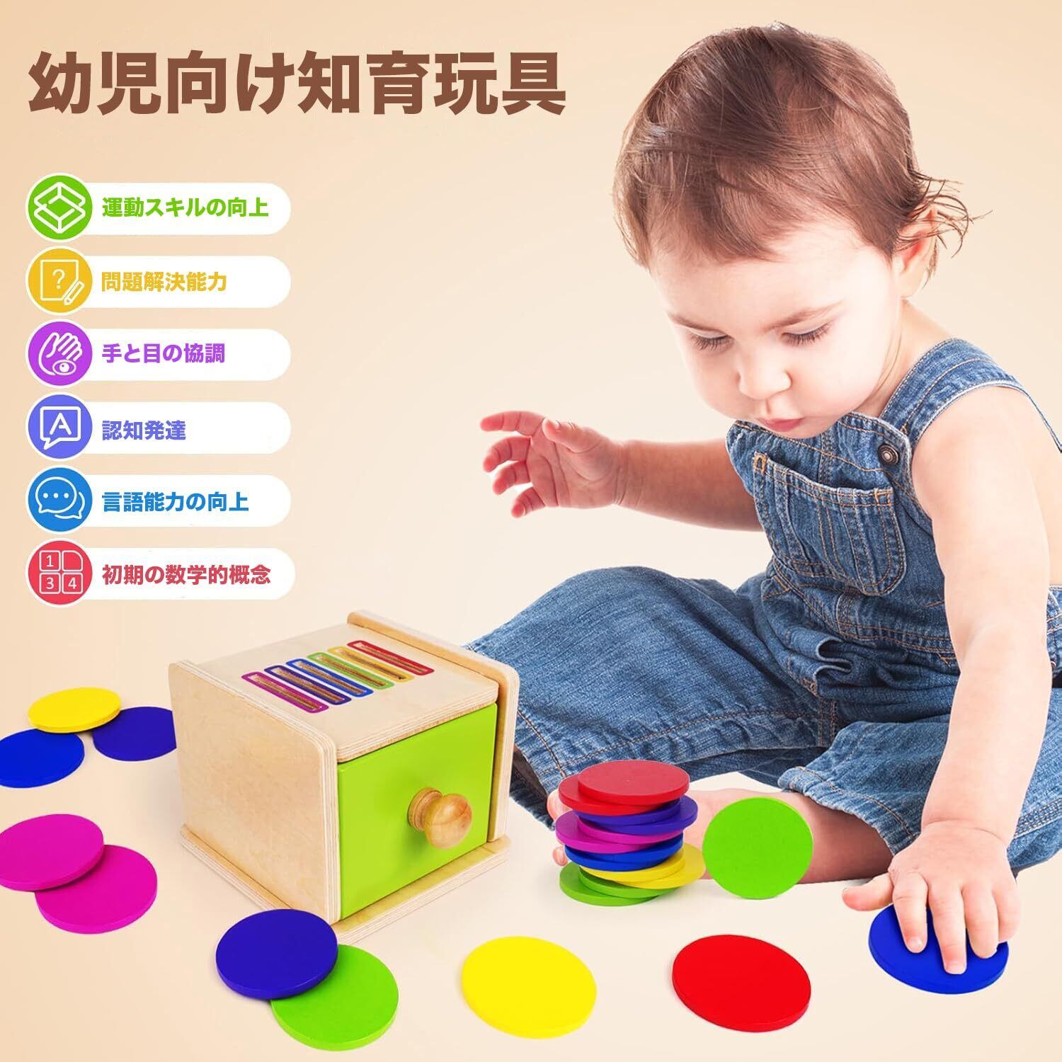 複数のメリット:6-12ヶ月、12-18ヶ月、1歳半未満の幼児に適しています。このボックスは、親子関係を深めながら、手と目の協調性、色認識能力、運動スキル、問題解決能力を発達させるのに役立ちます。