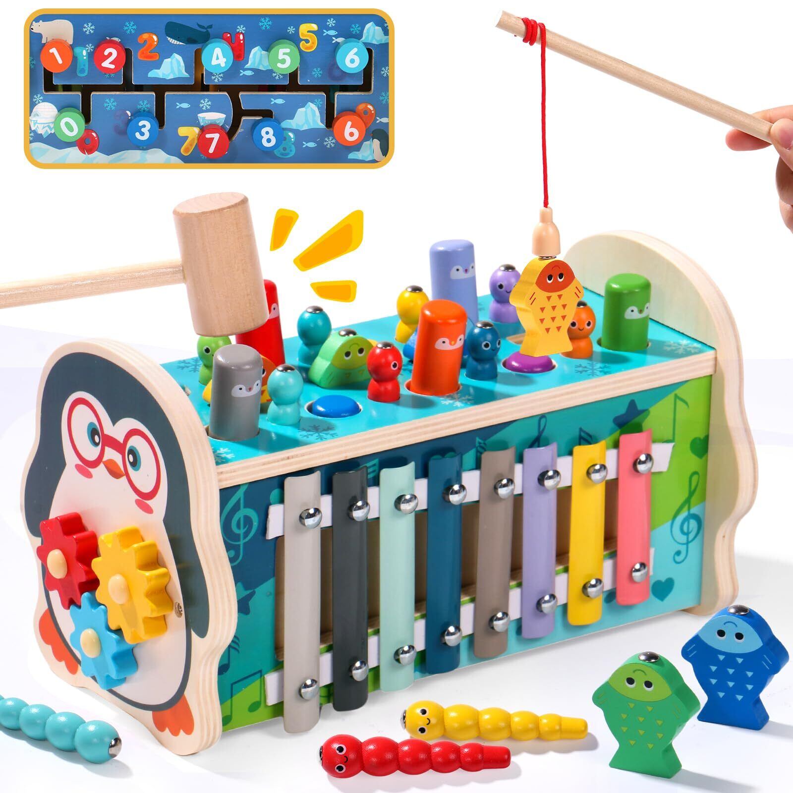 【在庫処分】モンテッソーリ 知育玩具 木のおもちゃ 男の子 女の子 ハンマートイ 鉄琴玩具 歯車 おもちゃ 魚釣りゲーム 1歳 2歳 3歳 誕生日プレゼント 入園お祝い 指先の知育 1 2 3 4 5 6歳 出産祝い 女の子 男の子ランキング