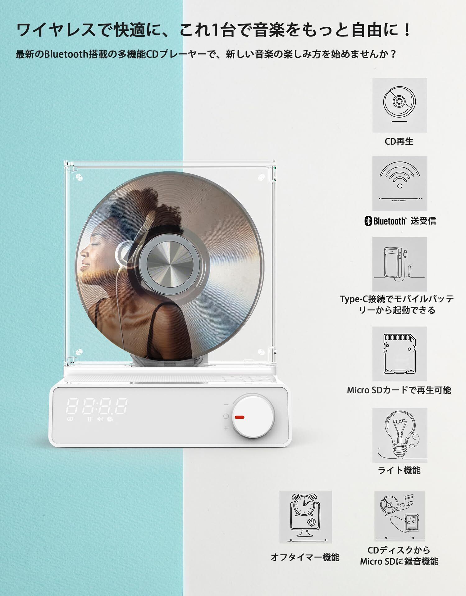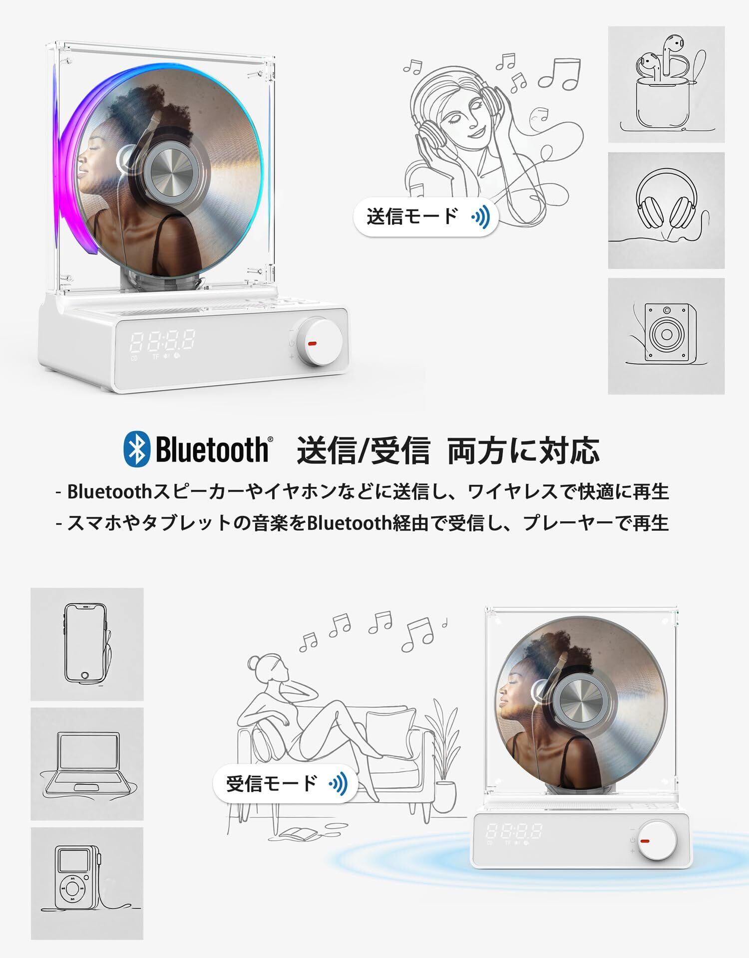 【Bluetooth送受信対応CDプレーヤー – ワイヤレスで広がる自由な音楽体験】Bluetooth送受信機能を搭載したCDプレーヤーが、あなたの音楽ライフをより自由に、より快適にアップグレード!高音質なCDサウンドを、ワイヤレスで好きなデバイスに届けます。