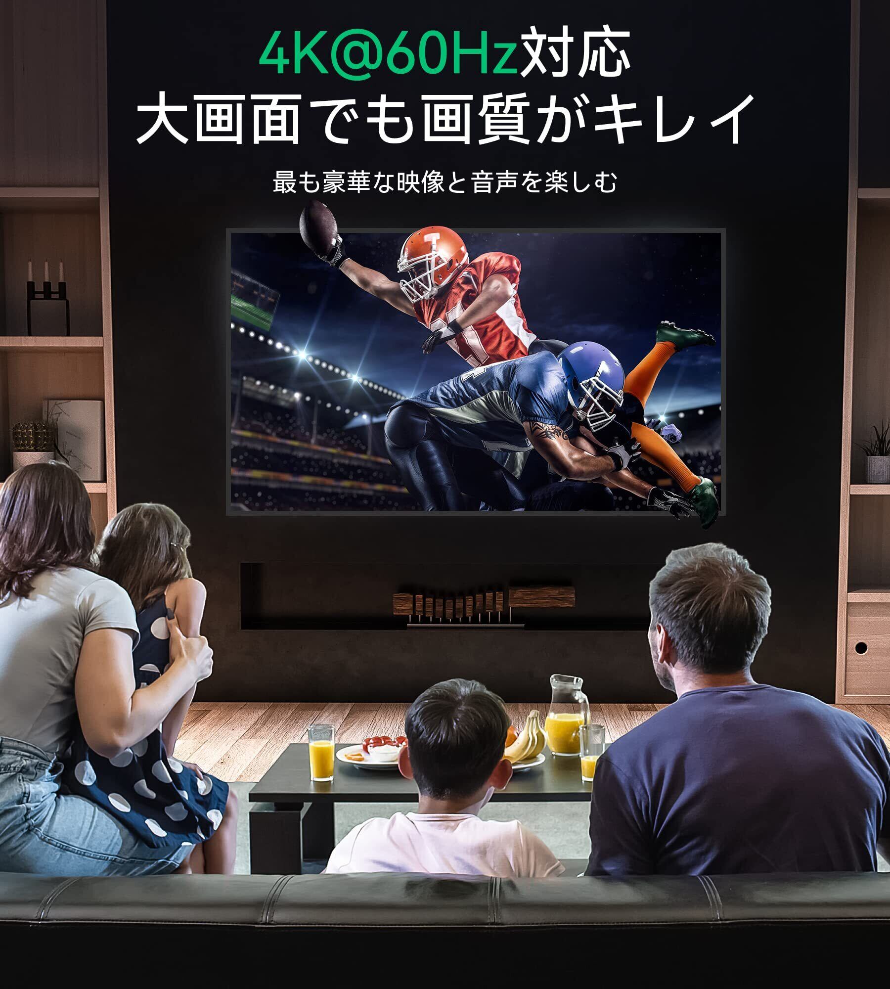 【高解像度】本HDMI切替器は、4K 60Hz 1080P 60Hzまでの解像度に対応しており、美しく高精細な信号を出力でき、臨場感溢れる高精細な大画面映像を楽しみます。