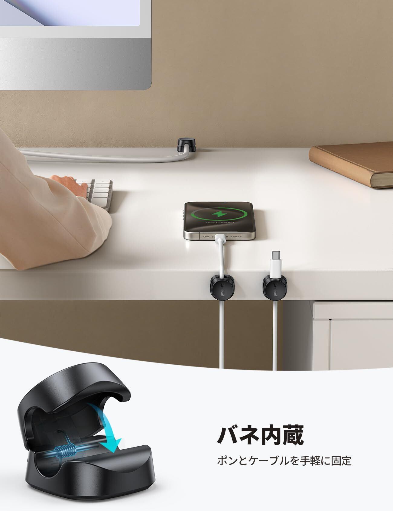 【バネ内蔵・片手操作】頑丈なバネ内蔵の設計を備えており、マグネット式のように磁石が外れるとか、マグネットの力が弱いとかのような心配は一切ありません。手軽に開閉できるタイプで、片手で側からポンとケーブルを固定できます。ケーブルの出し入れが格段に楽になります。暗い所でケーブルを戻そうとするといちいち見て確認しなくても戻せます。ケーブルがスルッと落ちて、何度も拾って困るということも有りません。溝の幅:8mm。充電ケーブル、電源コード、USBケーブル、HDMI配線、 Type-Cコード、lanコード、ACケーブルなど、ほとんどのケーブルに対応可能。