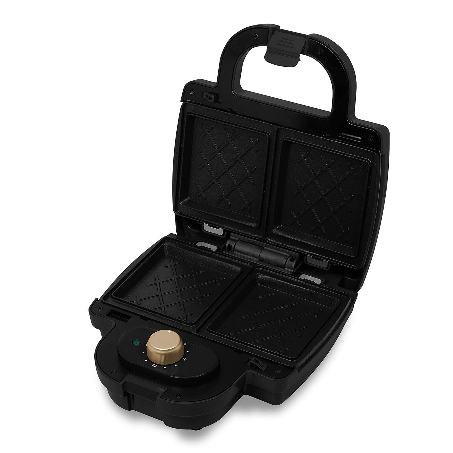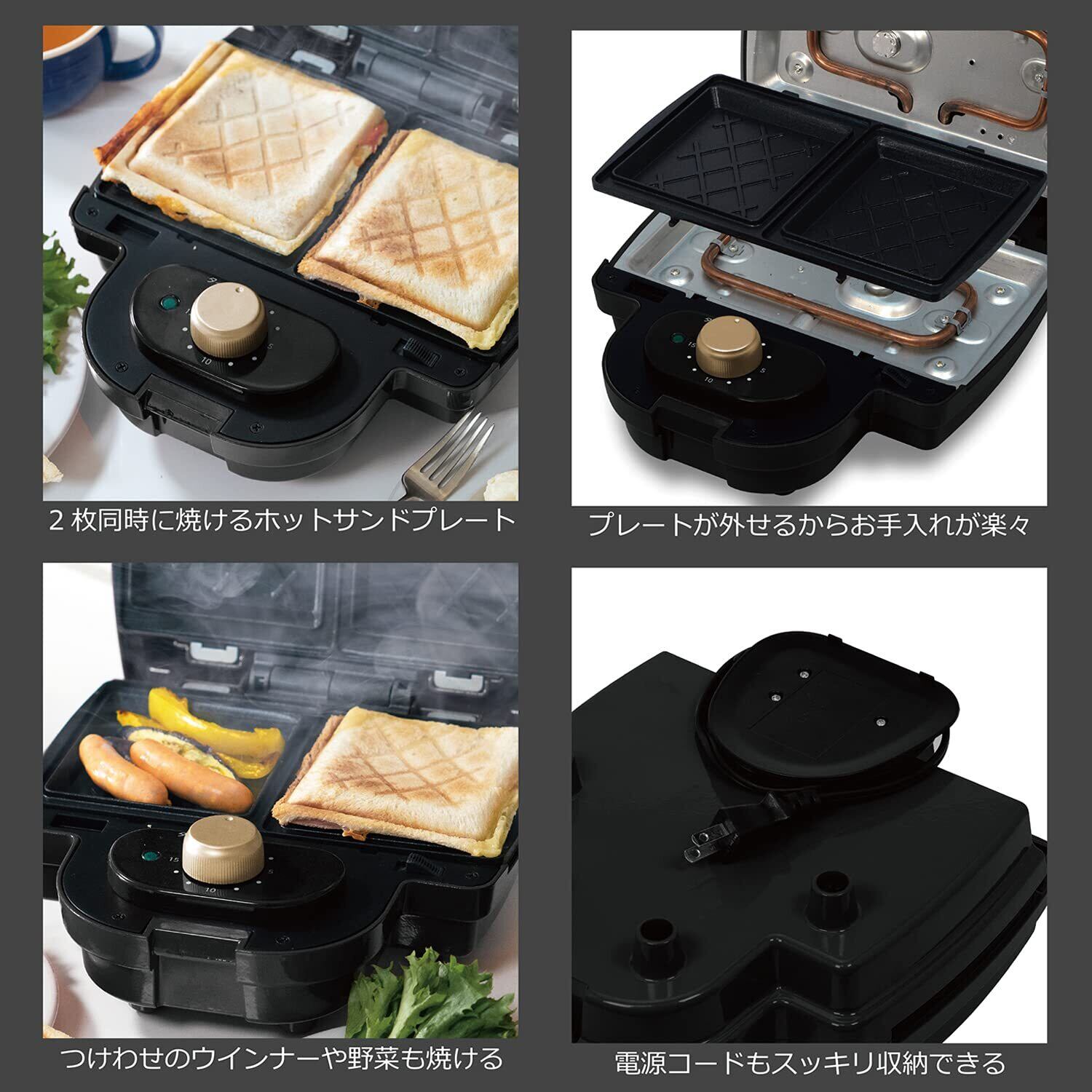 東京Deco ホットサンドメーカー 電気 ダブル 耳まで焼ける ブラック プレート2種 (ホットサンド ワッフル) タイマー付き 着脱式 厚焼きサンド 両面焼きフライパン プレート お手軽 時短 調理家電 i001
