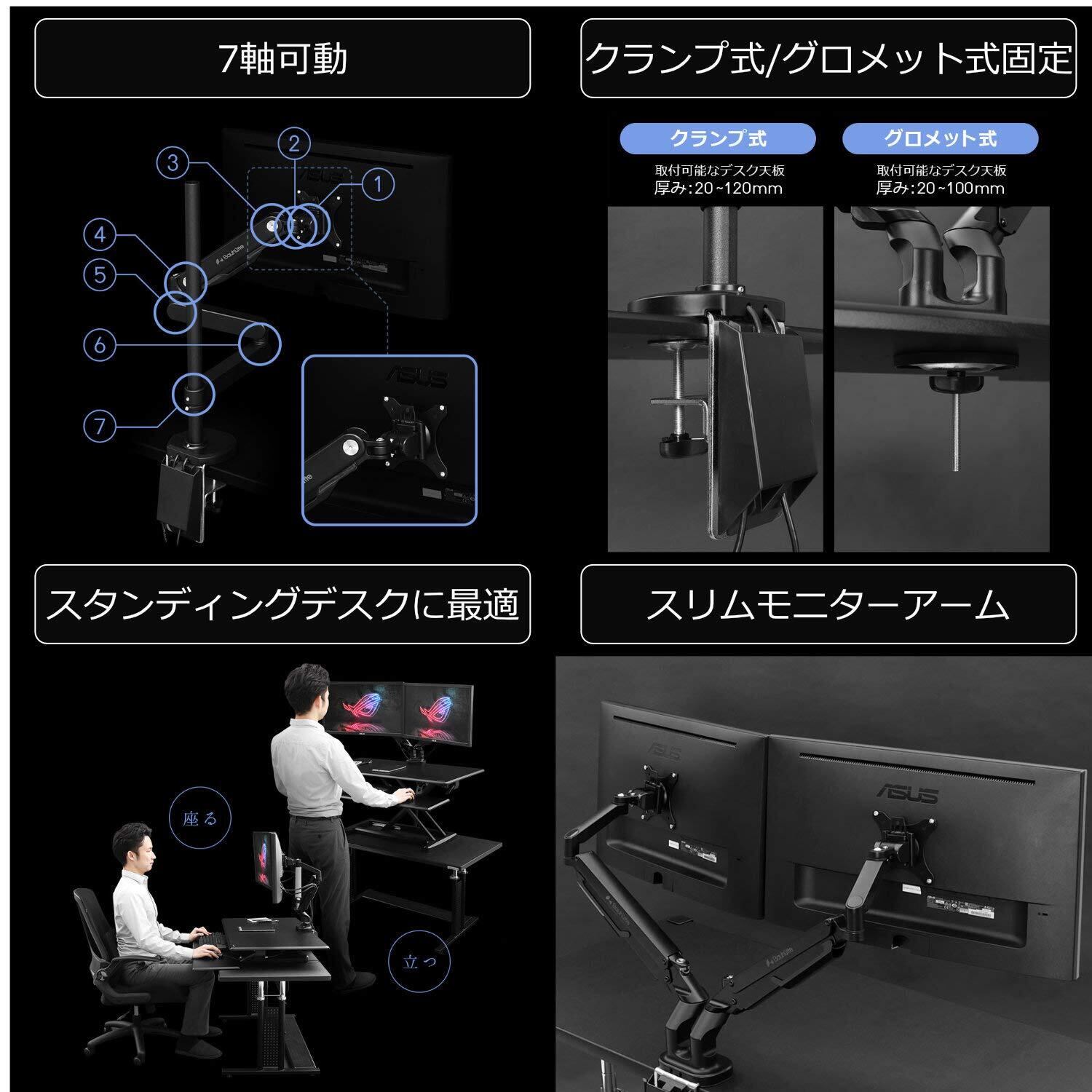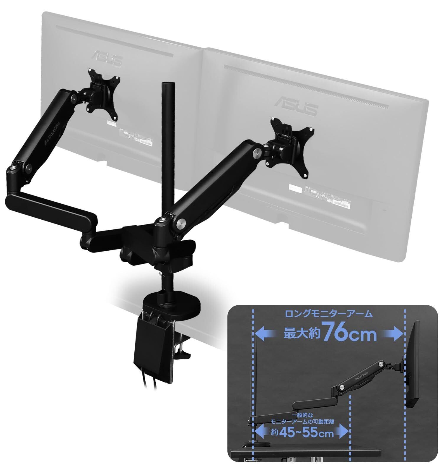 ・ロングモニターアームGS BMA-2GS-BK:ガス圧式、デュアル、ロングタイプ