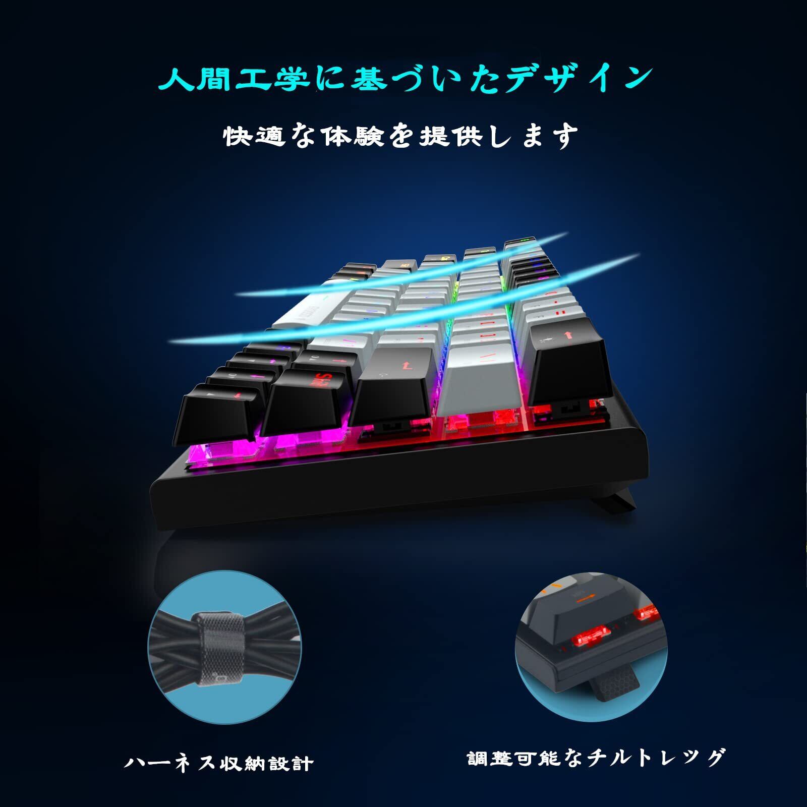 ️【全キーロールオーバー&メカニカル式&赤軸】 ▶ 各々のキーは独立した高品質の赤軸キースイッチにより制御され、複数のキーを同時に押しても干渉しません。高速反応し、ゲーミング・タイピング・プログラミングなどに最適です。赤軸を採用:メカニカルキースイッチの中で一番柔らかいタッチです。柔らかいタッチにもかかわらず、リニア軸としての急速な入力が可能で、この快感は青軸や茶軸では味わえません。そして、黒軸をベースとし、音は小さく、より一層軽く滑らかになっており、「行雲流水」のような打鍵感とも言えます。タイプ音は「かちゃかちゃ」と柔らかい音で聞こえはするものの、作業の邪魔になる音量ではありません。また、キーが反応しない場合、このキーボードの軸を取り替え、用途によって「押し下げ圧力・打鍵感・クリック音」などが自由に選べ、異なる軸を部分的に使用する場合は自分で交換することも簡単です。▶ギフト:スペア赤軸*2;キーキャッププーラー*1;スイッチプーラー*1;Escキー+スペースキーのキーキャップ(オレンジ色) *1。