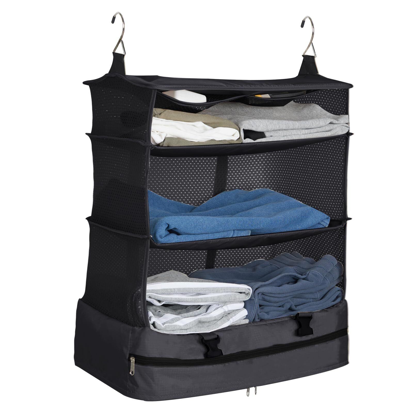 【在庫セール】クローゼット 吊り下げ収納 4段 【防水旅行版】 インナーバッグ 大容量 衣類ラック 収納/旅行/出張 帽子/鞄 取付簡単 省スペース 折り畳み式 (X-Large, ブラック)