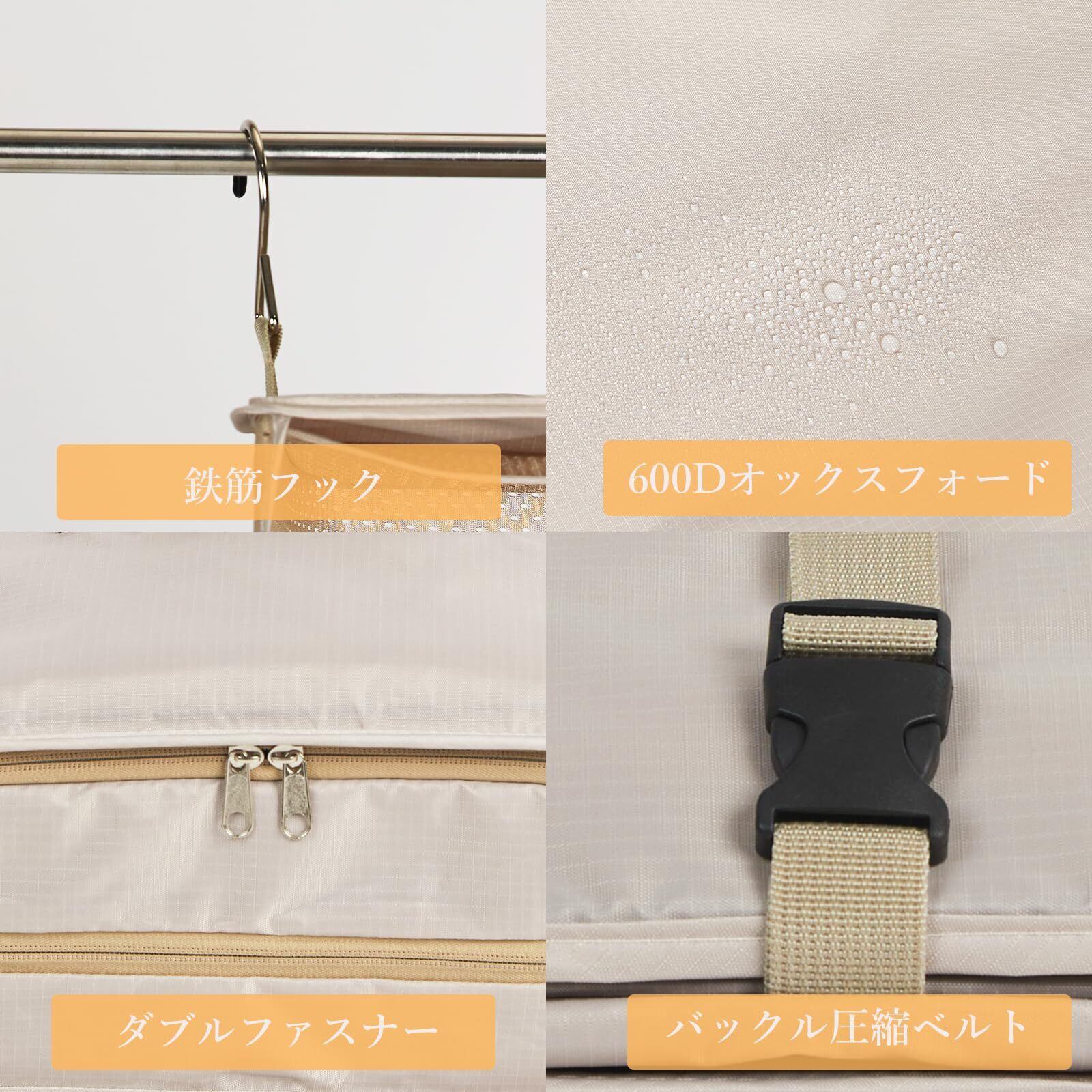 【耐久性良い防水素材】高品質なオクスフォードを採用して、水とホコリから大切な衣類を守ります。サイトはメッシュ素材で通気性も良くて、しっかりとしたステッチで耐久性が強力で、ジッパーを使用して長持ちするようにしています。