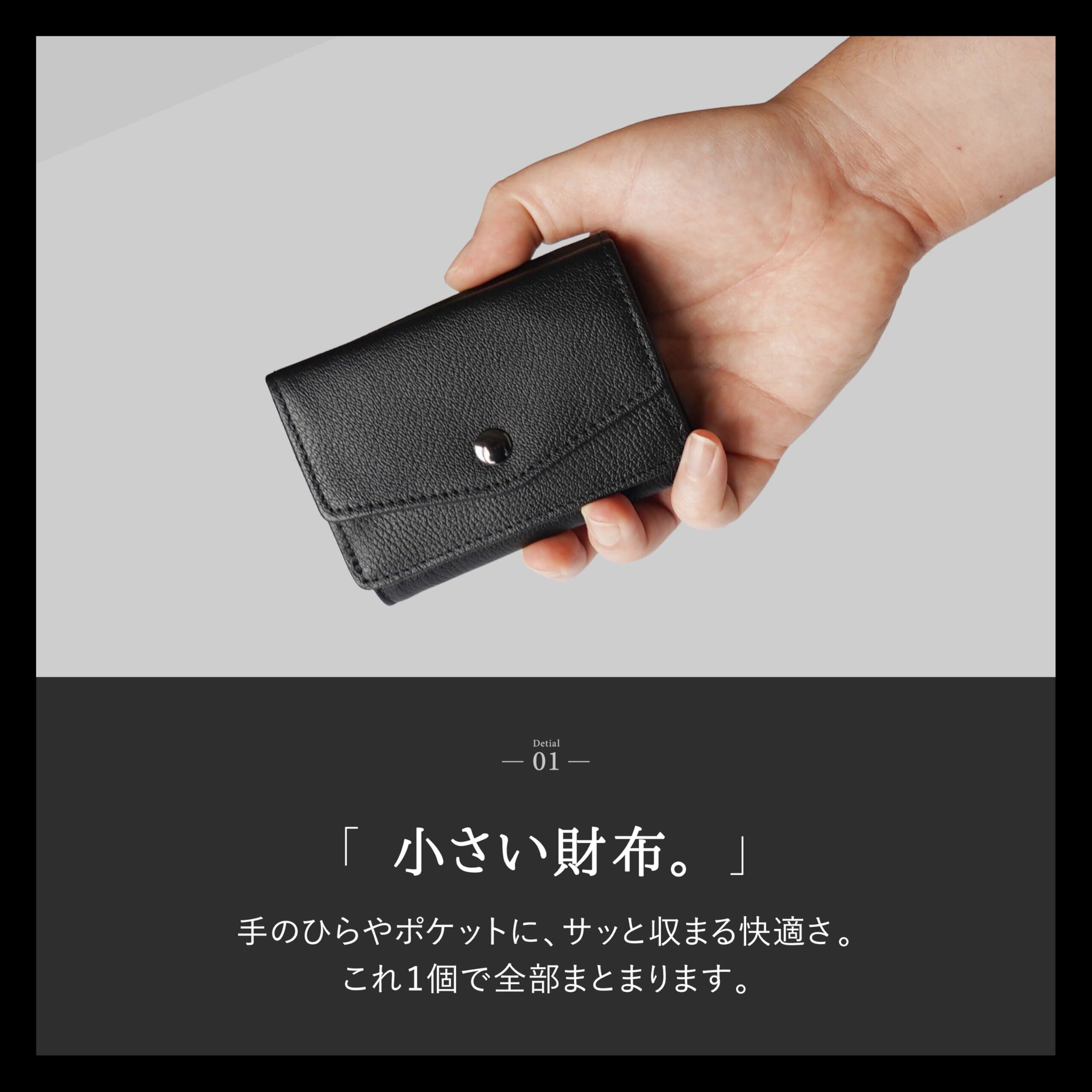 「 小さい財布 」手のひらやポケットに、サッと収まる快適さ。これ1個で全部まとまります。