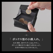 「 ボックス型 の 小銭入れ 」大きく開き、見やすくサッと出しやすい。ポケットや鞄の中で小銭がこぼれないよう、仕切りの高さにもこだわりました。