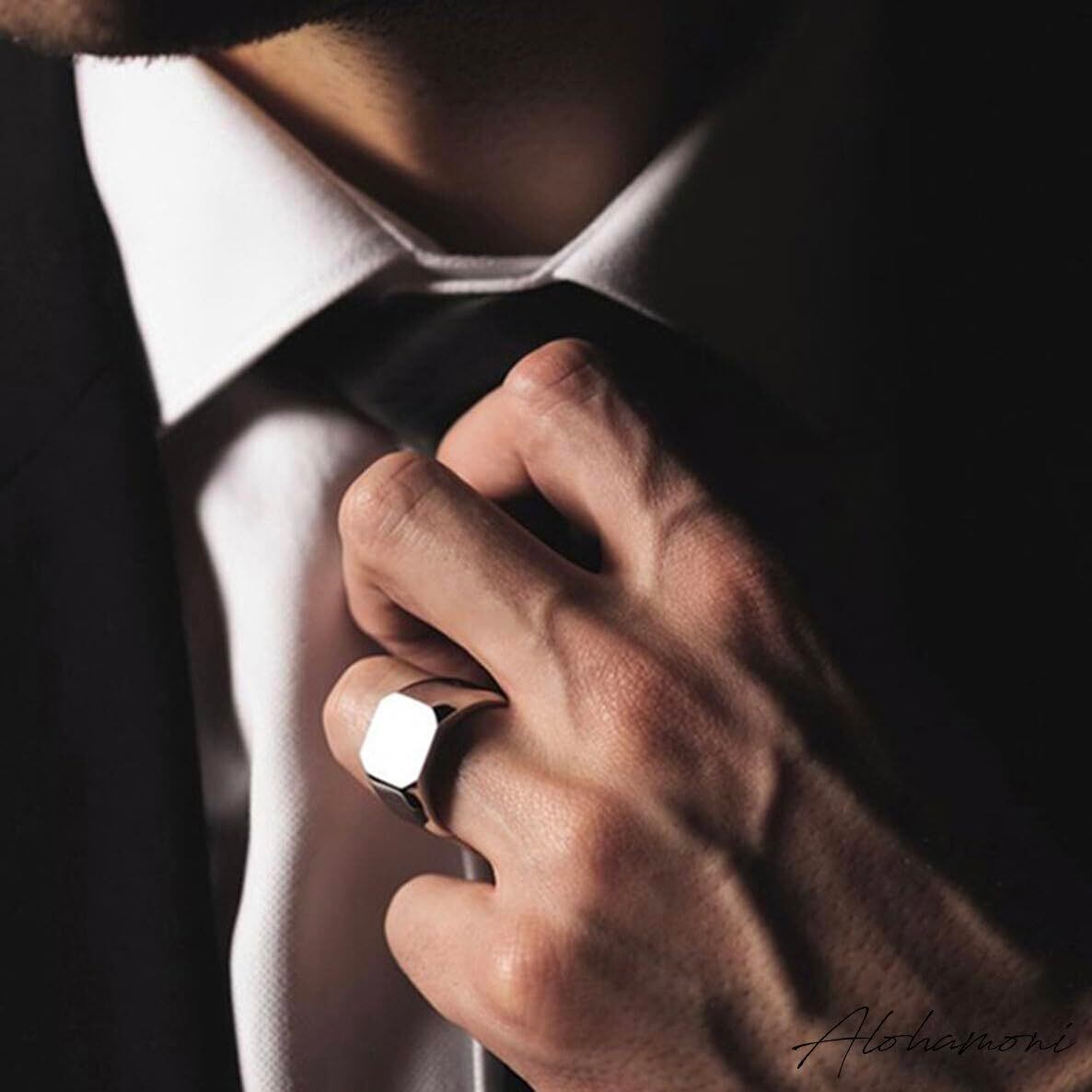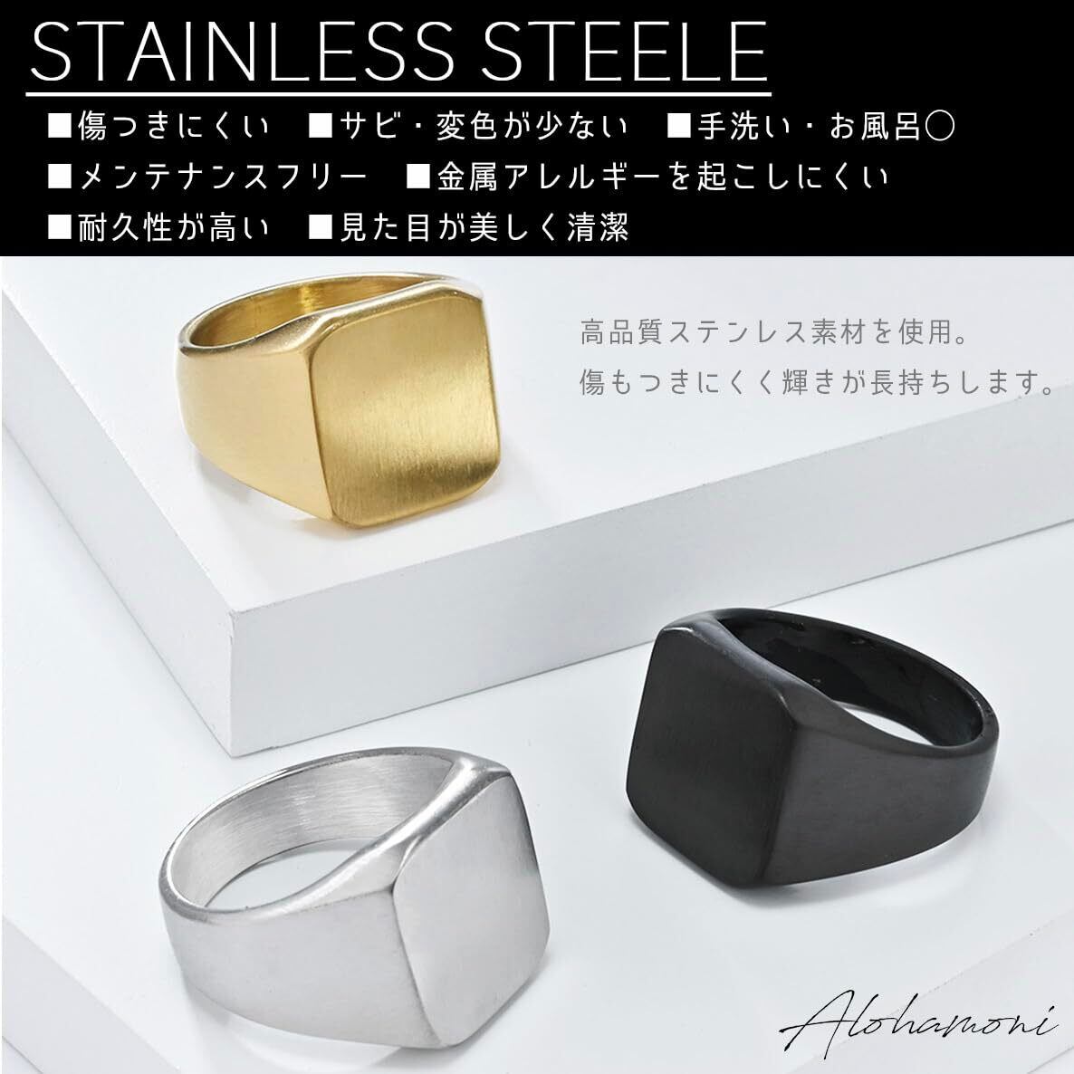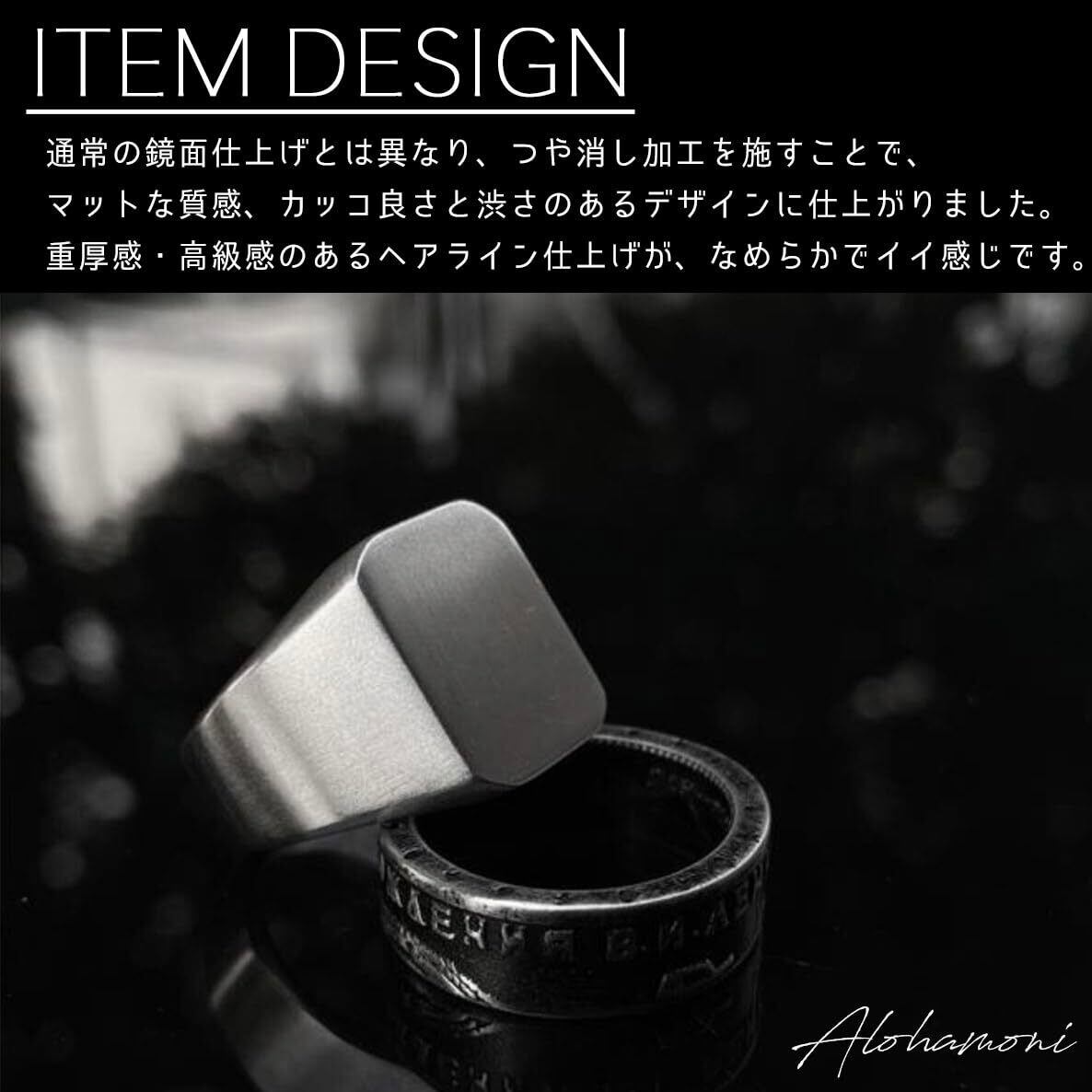 [ALOHAMONI] 印台リング サージカルステンレス つや消し 加工 ヘアライン マット 仕上げ 印台 スタンプ 指輪 シグネット スクエア リング メンズ