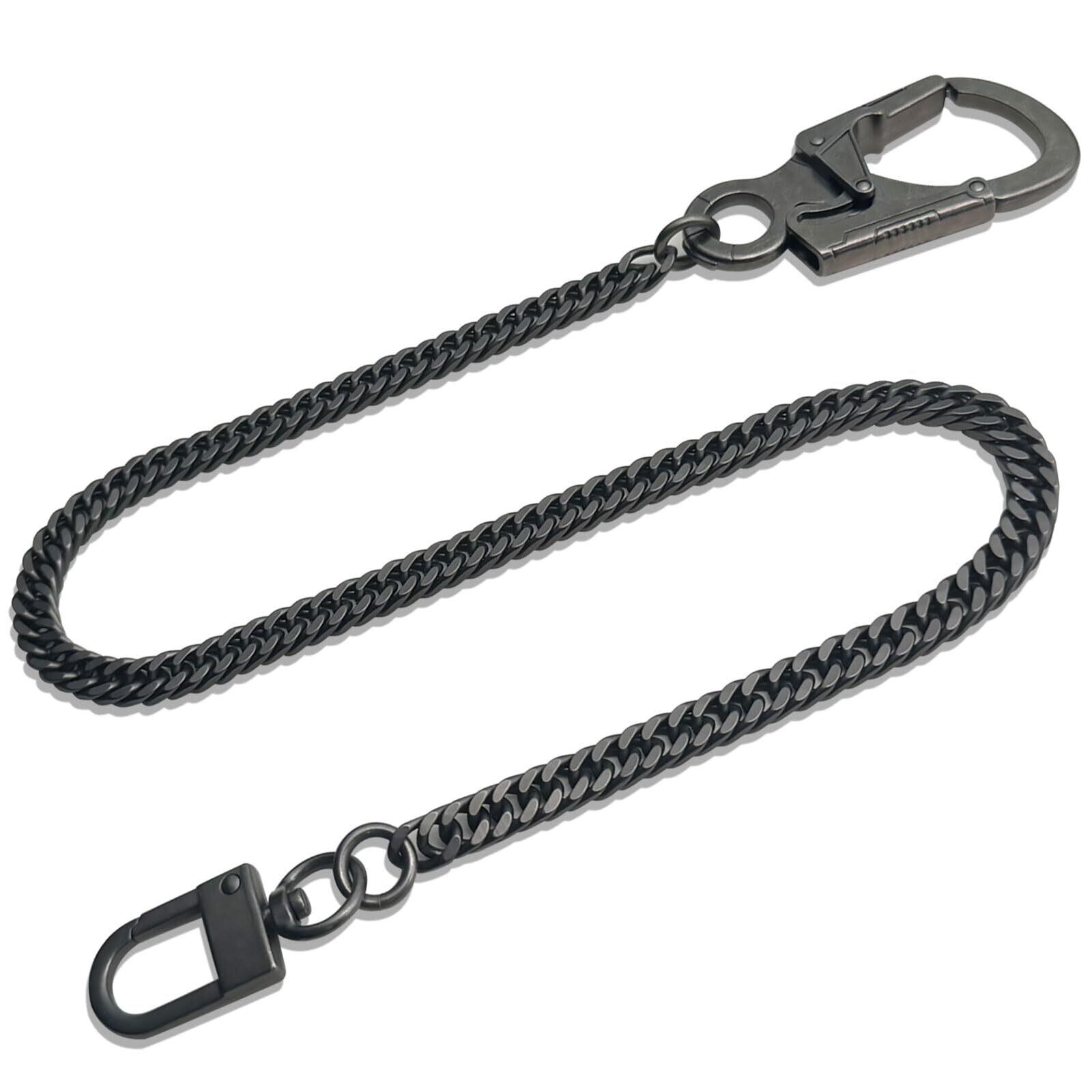 Ahiller ウォレットチェーン キーチェーン 63cm メンズ用 ステンレス鋼製 二重ロック&合金カラビナ バイクアクセサリー 鍵ストラップ 高耐久仕様 (BK-ガンメタル)