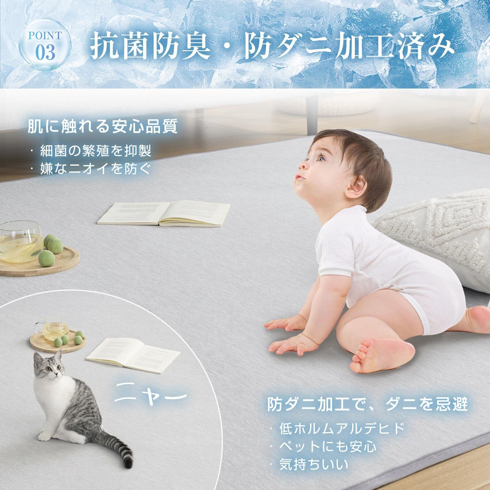 【新着商品】Sun Deco カーペット 夏用ラグマット 接触冷感 夏用カーペット 185×185cm(約2畳)地毯 冷感ラグ 洗える ひんやりラグ 滑り止め 夏用ラグ 抗菌防臭 防ダニ 吸湿速乾 冷感 カーペット グレー