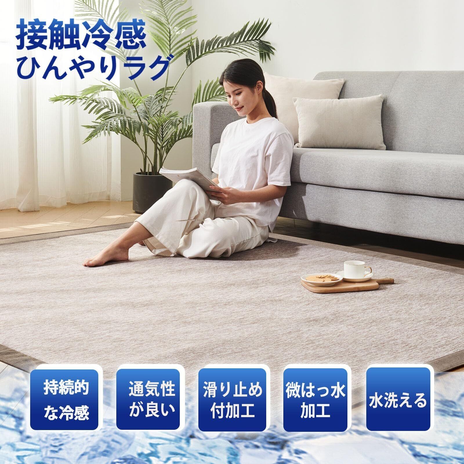 【接触冷感ラグ】この夏用ラグマット1.5畳は冷却値が0.36、肌に触れるとひんやり、優れた放熱性で、夏場にかかってしまい過ぎるクーラーなどの電気代を抑えてくれる効果も期待できます